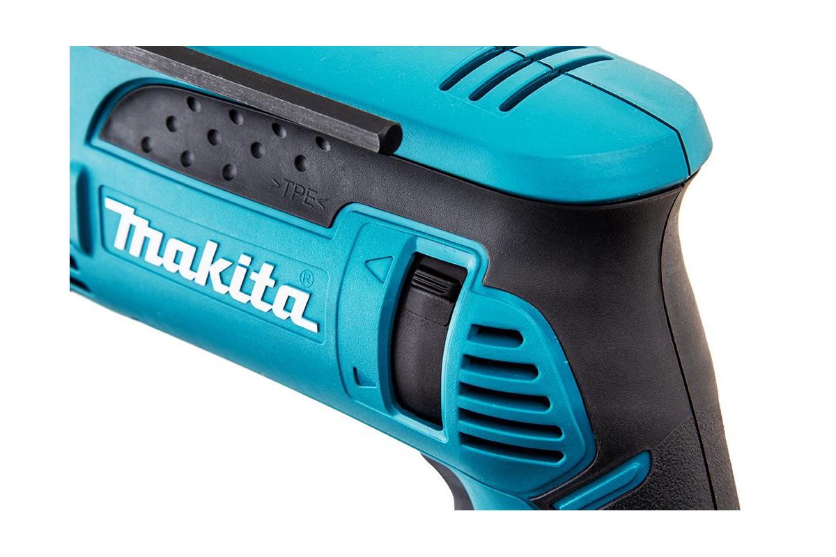 Ударная дрель MAKITA HP1640K – это компактный и производительный электроинструмент для ударного и безударного сверления отверстий в различных материалах. Система электронной регулировки числа оборотов и ударов позволяет с максимальной эффективностью работать с материалами различной плотности. Предусмотрена функция реверса. Дополнительная рукоятка оснащена ограничителем глубины сверления для максимально точного сверления.