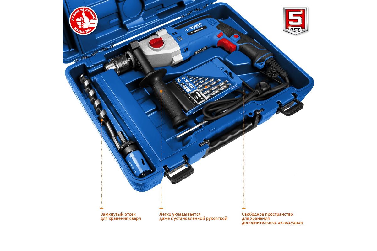 Дрель ЗУБР ДУ-П850-2 ЭРМК Профессионал 850 Вт ударная 2-х скоростная, в кейсе