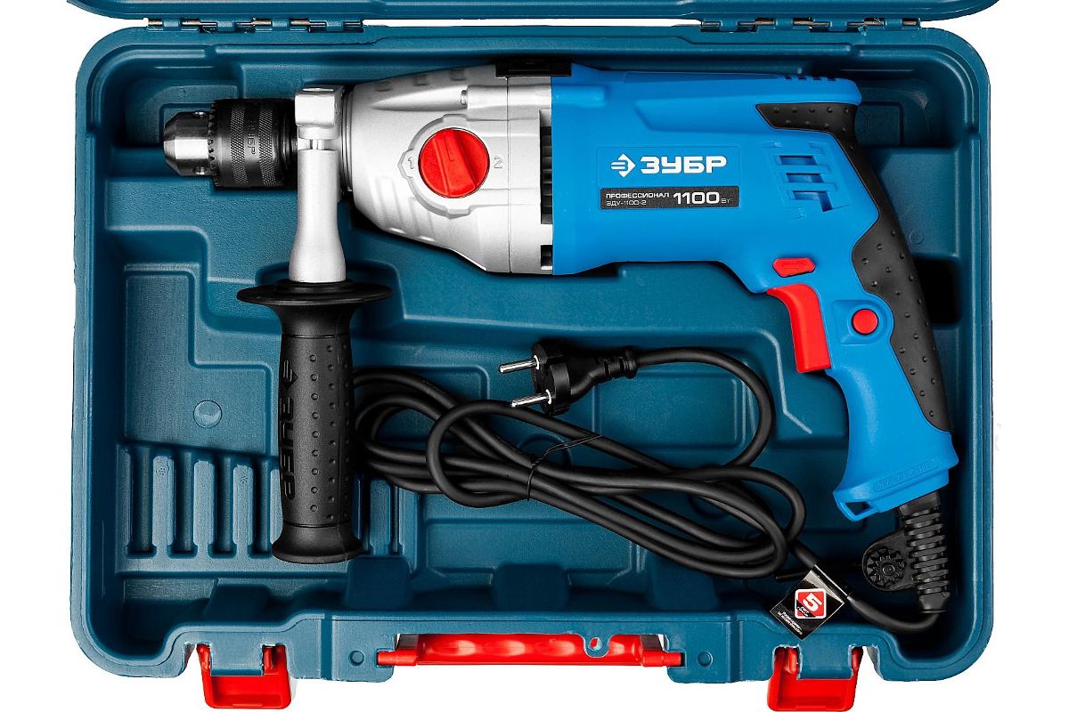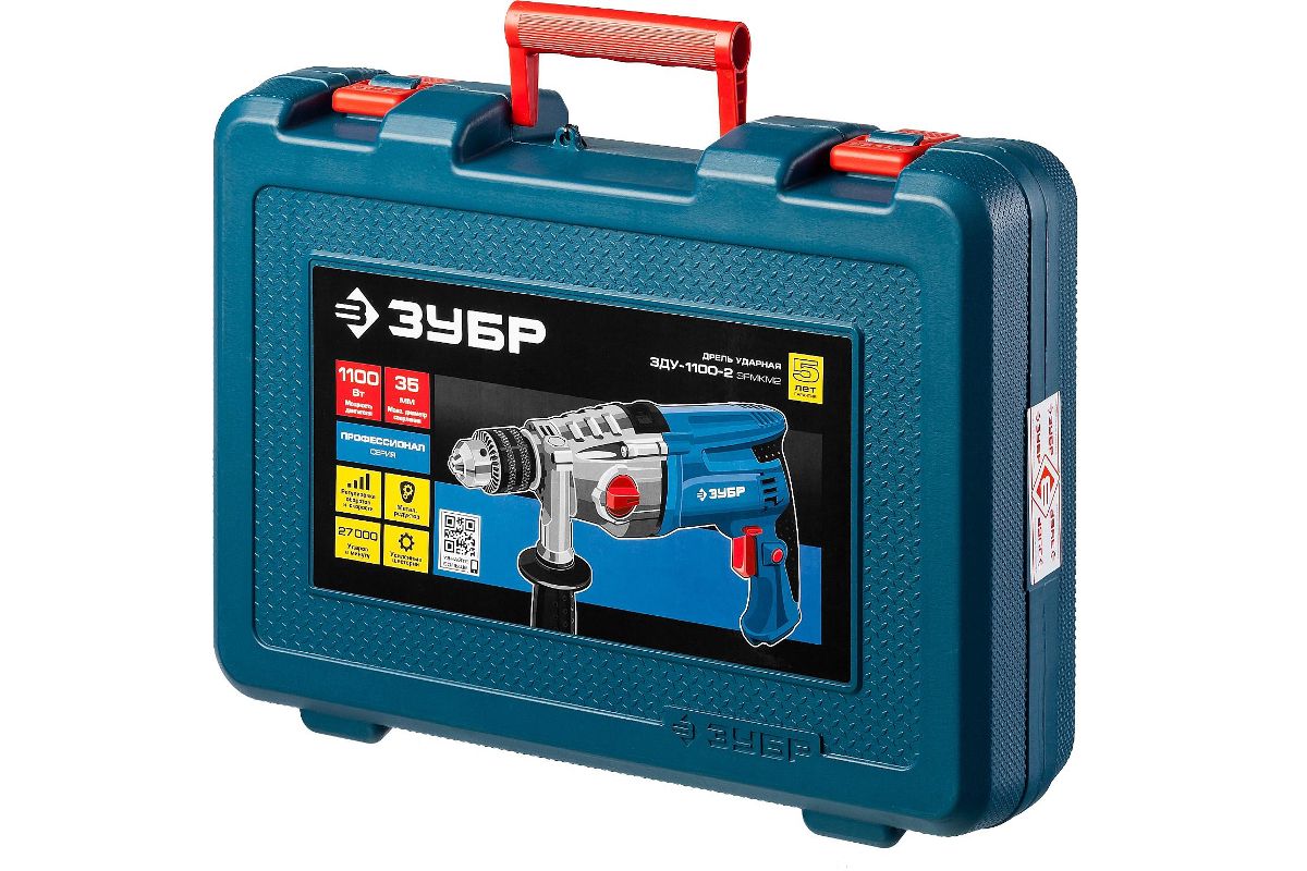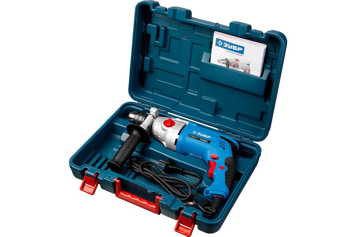 - Кейс - для удобства хранения и транспортировки ударной дрели Зубр ЗДУ-1100-2 ЭРМКМ2.