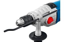 Ударная дрель Зубр ЗДУ-1100-2 ЭРМКМ2 - профессиональный инструмент с надежной конструкцией. Она оснащена дополнительной рукояткой-пеналом, в которой можно хранить оснастку. Графитовые щетки имеют увеличенный срок службы, ресурс не менее 50 часов. Модель поставляется в кейсе. что решает вопрос хранения и транспортировки.