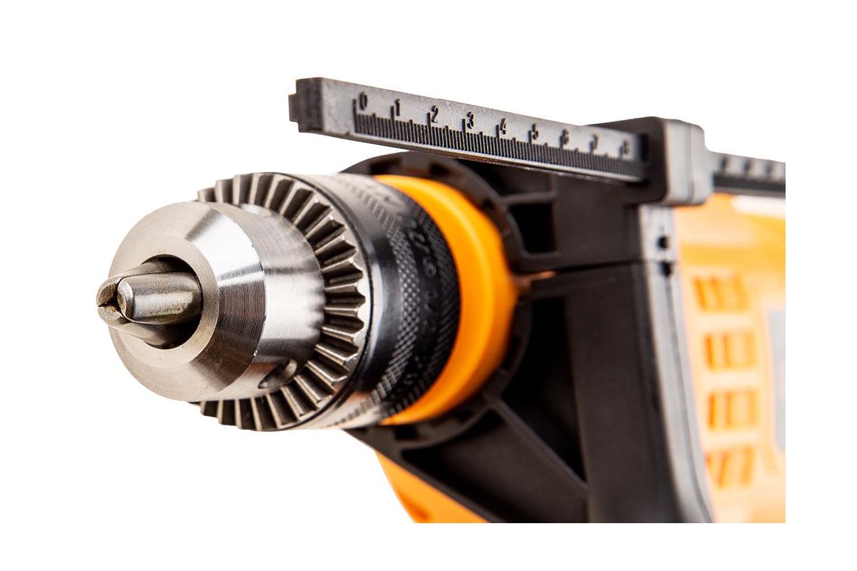 Ударная дрель ВИХРЬ ДУ-550 72/8/1 - электроинструмент, работающий от сети (220 В/50 Гц). Используется при сверлении отверстий в дереве и металле. Благодаря наличию ударного механизма дрель справляется со сверлением бетона и камня. Рукоятка имеет мягкую накладку и выступ в нижней части для удобного и надежного захвата инструмента. Частоту вращения можно регулировать с помощью специального колесика, подстраивая инструмент под конкретный материал. Предусмотрена фиксация клавиши пуска в положении ''старт'' для неутомительной работы. Качественные комплектующие, надежный двигатель обеспечивают бесперебойную эксплуатацию инструмента.