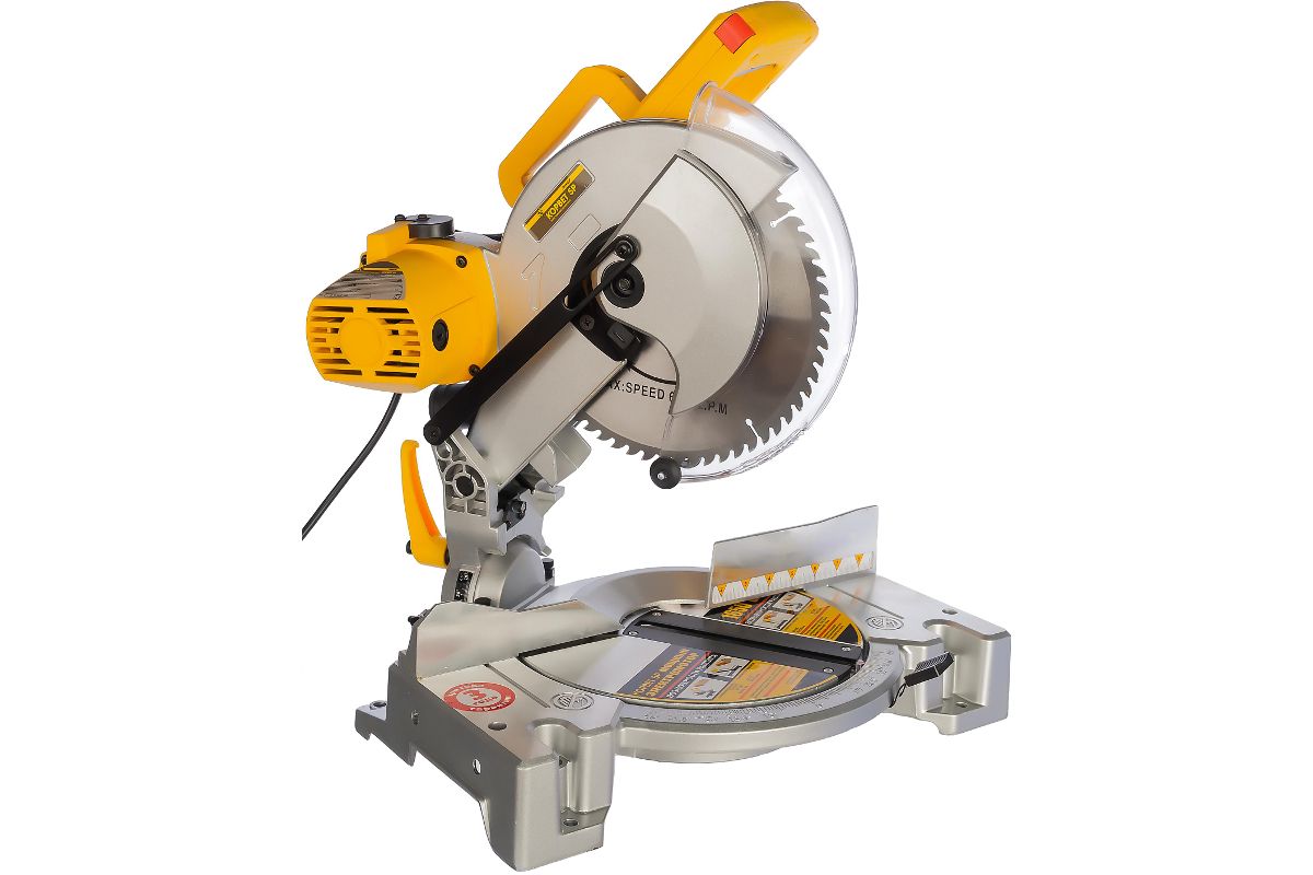 Инструмент оснащен двигателем мощностью 1650 Вт. За счет ременной передачи он обеспечивает высокую производительность. Скорость вращения пильного диска диаметром 254 мм на холостом ходу достигает 5800 оборотов минуту. Максимальные параметры для заготовки, которую сможет обработать станок, составляют 70х130 мм. Для ее надежной фиксации предусмотрена вертикальная струбцина. Для реза под углом положение пильного диска изменяется на 45 градусов. При необходимости регулируется и угол наклона рабочего стола.