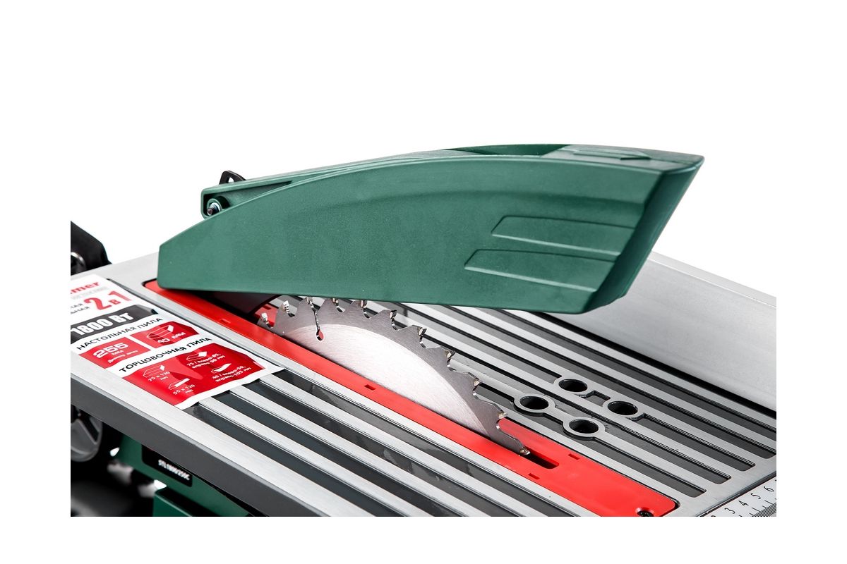 Инструмент можно использовать в режиме настольной циркулярной пилы. Он подходит для продольного и поперечного распила.