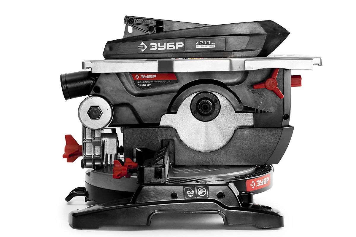Пила ЗУБР ЗПТК-210-1500 - комбинированная модель. Она объединяет в себе торцовочную и настольную циркулярную пилу. Трансформация пилы из одного типа в другой происходит в пару движений. Эта модель пилит прямо, косо, под наклоном и в комбинированном режиме. Распилит деревянные изделия, в том числе с пластиковыми покрытиями на глубину до 55 мм. Мощность 1500 Вт. Обороты 4500 об/мин.