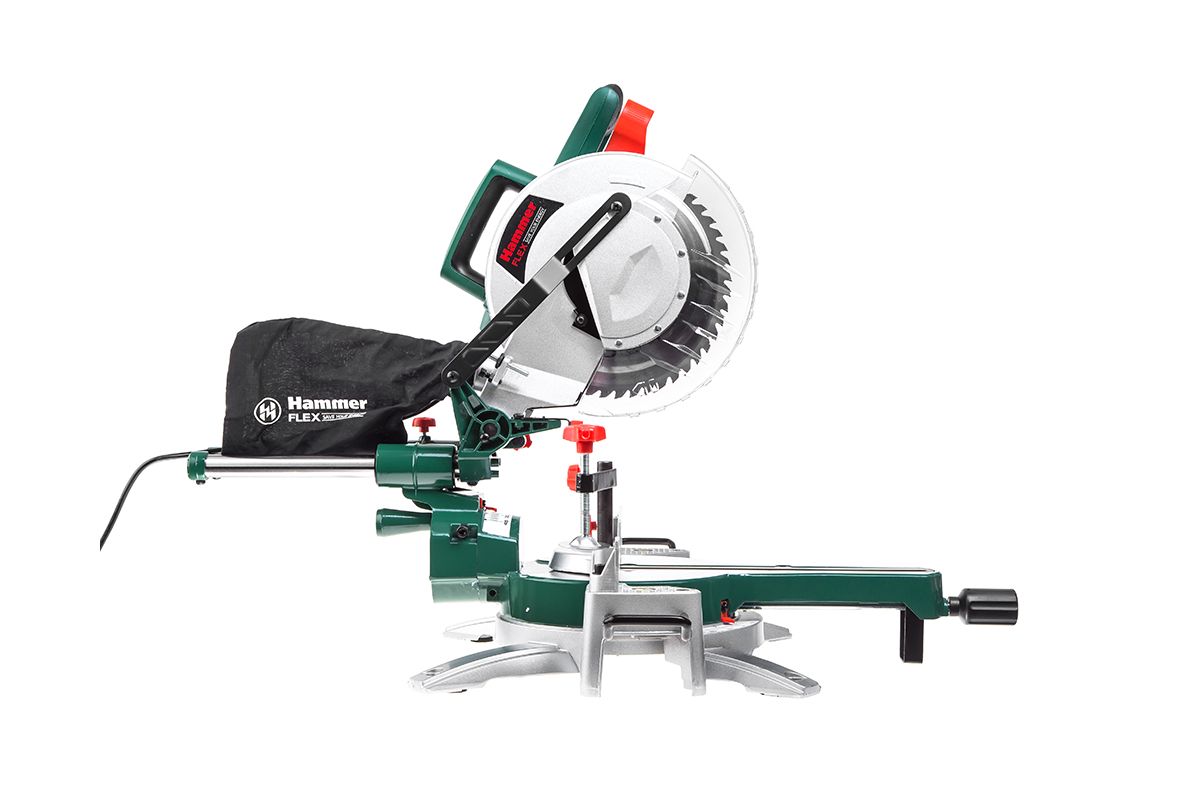 Hammer STL1800/255P - торцовочная пила с литым алюминиевым основанием, алюминиевым рабочим столом и возможностью фиксированной установки, в комплекте отрезной диск 255 х 30 х 48Т с твердосплавными зубьями. Широкая база с удлинителями для удержания длинной заготовки и поворотным столом. Может использоваться для резки алюминиевого профиля. Имеется возможность подключения пылесоса. Литой опрный стол вращается до 50 градусов влево и вправо, двигатель имеет наклон до 45 градусов влево.