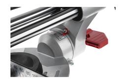 Торцовка имеет свободно и плавно регулирующиеся удлинения стола с обеих сторон. Нескользящая поверхность рукоятки и верхняя ручка для переноски дают превосходный захват инструмента, кроме этого у пилы имеются и две боковые ручки. Для работы в местах с недостаточным освещением у торцовки предусмотрена подсветка, направленная на область распила. Для аккуратной резки и точного просмотра линии реза пила имеет лазер, а все шкалы этой модели легко видны с рабочего места пользователя. А дополнением к этому станет то, что от рабочего места отходить не придется, так как все элементы управления доступны из него. Кстати, при таких впечатляющих возможностях отдельно стоит отметить вес пилы: этот мощный профессиональный инстурмент весит только 14 килограммов и будет легко транспортироваться. Безопасные условия во время транспортировки будут созданы благодаря фиксатору, удерживающему пилу в сложенном состоянии.