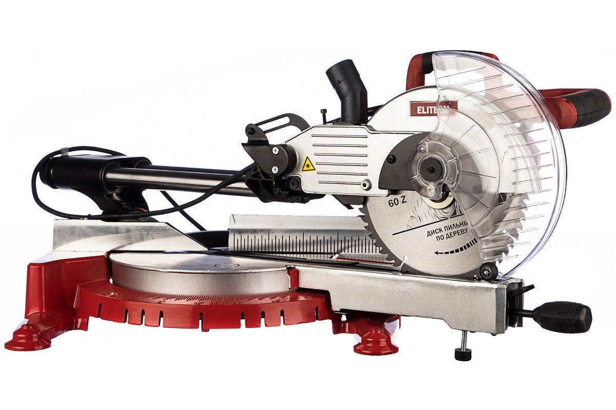 ELITECH ПТ 1825КУ – торцовочная пила для поперечной, наклонной и комбинированной распиловки. Справится с деревом и его производными: фанерой, ламинатом, ДВП и т.д. Мощность – 1800 Вт. Максимальная глубина пропила под углом 90 градусов – 75 мм. Инструмент подключается к бытовой электросети.