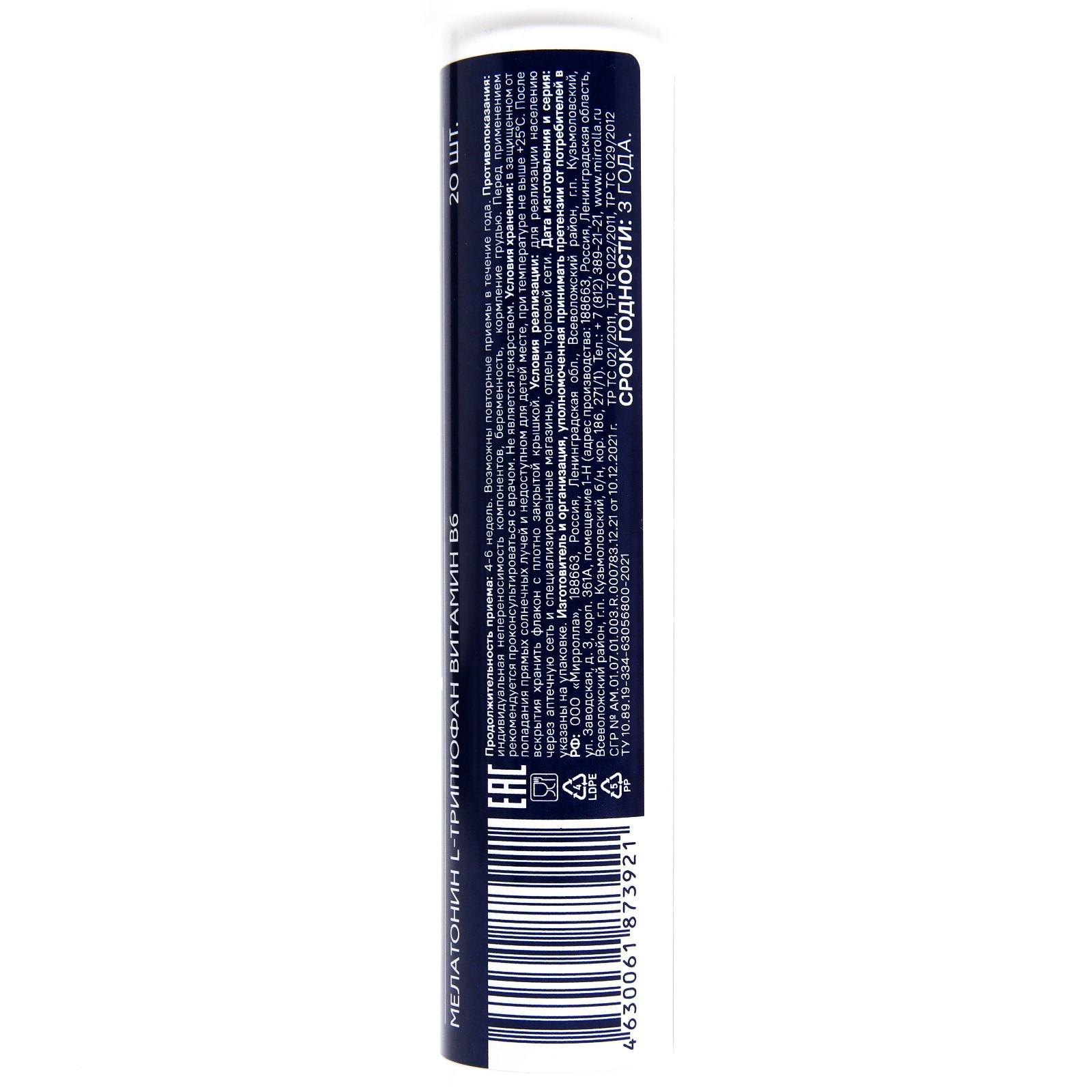 Биологически активная добавка к пище, дополнительный источник L-триптофана, Витамина В6, содержит мелатонин. Способствует нормализации и улучшению качества сна, адаптации организма к смене часовых поясов, улучшению эмоционального фона.
