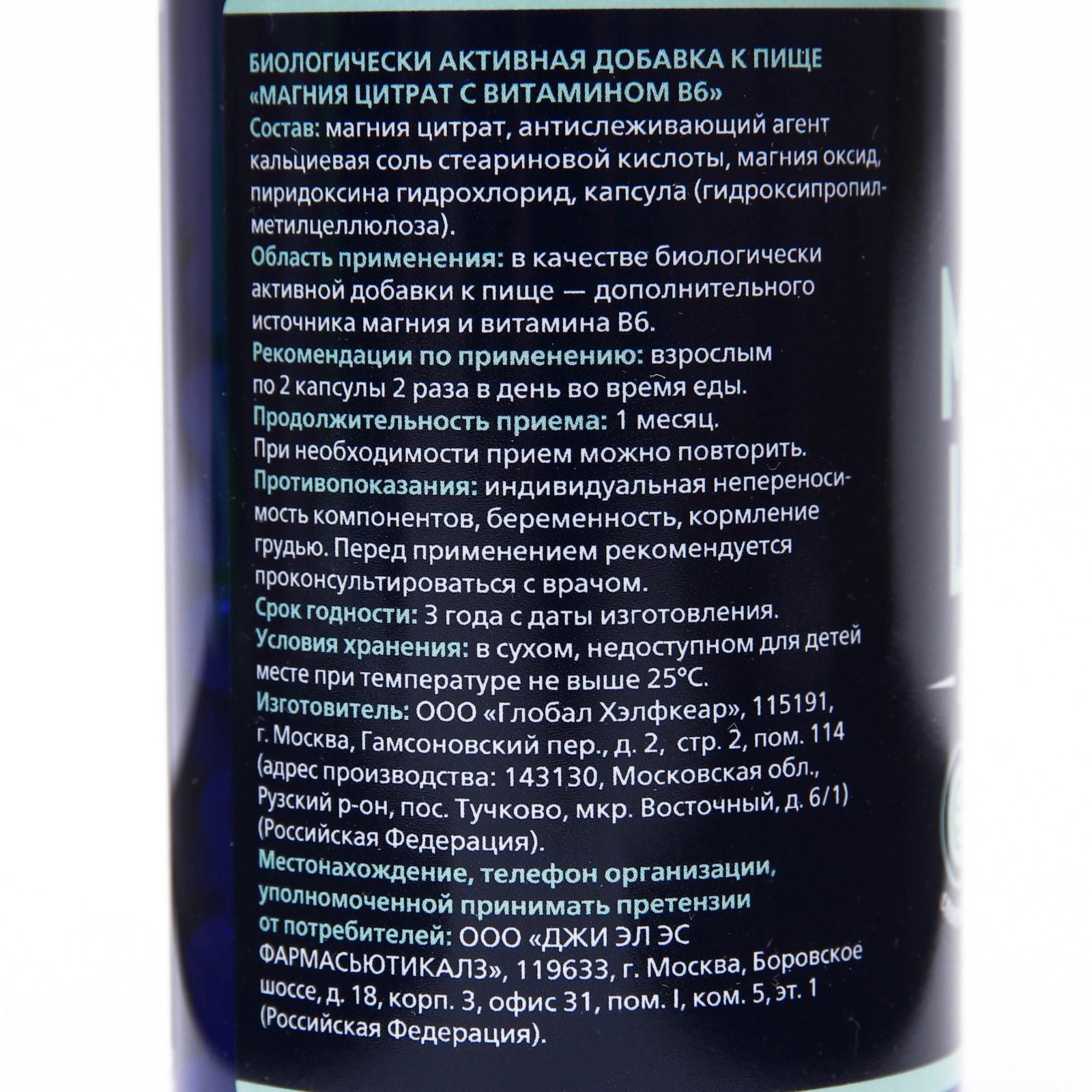 Состав: магния цитрат, антислеживающий агент кальциевая соль стеариновой кислоты, магния оксид, пиридоксина гидрохлорид, капсула (гидроксипропилметилцеллюлоза).