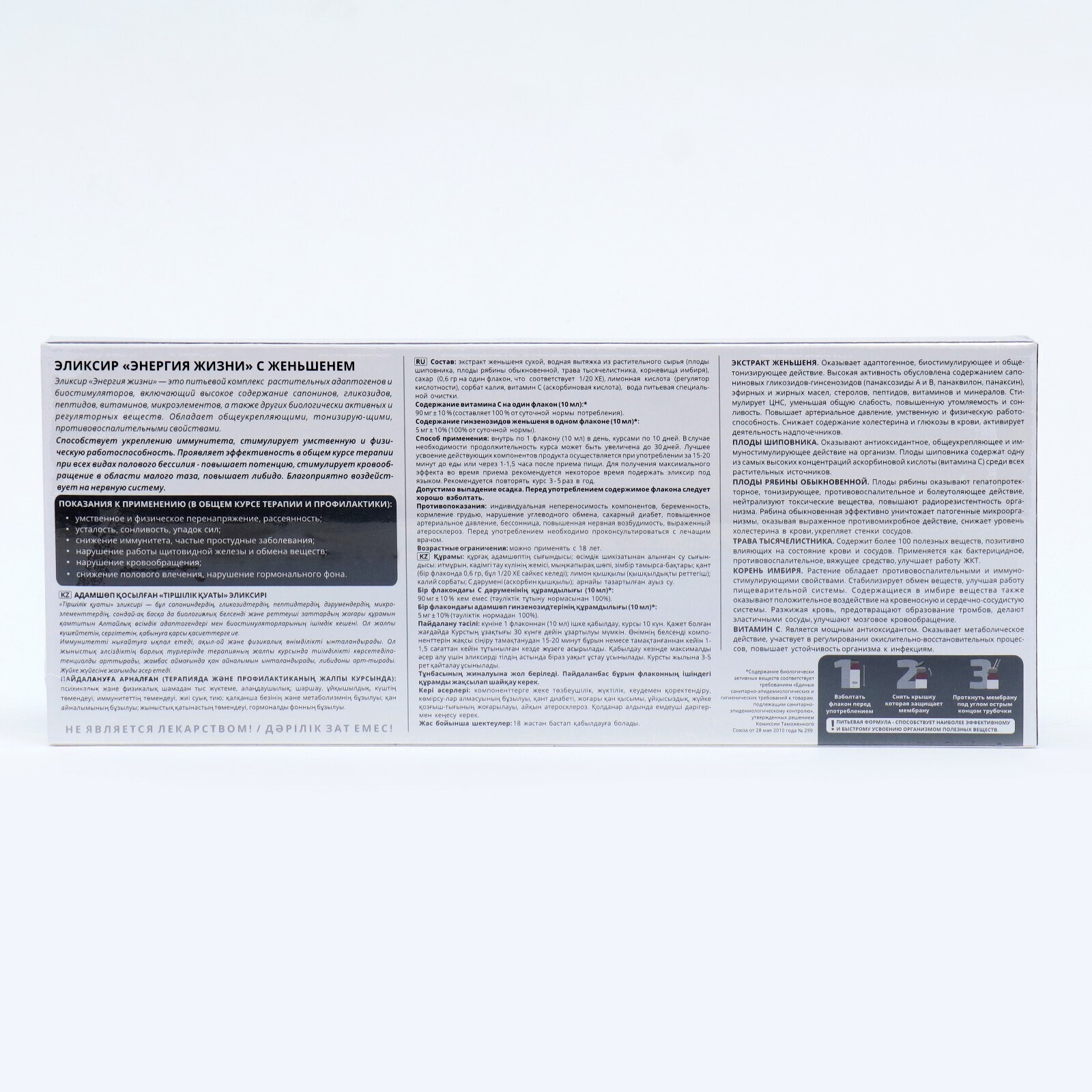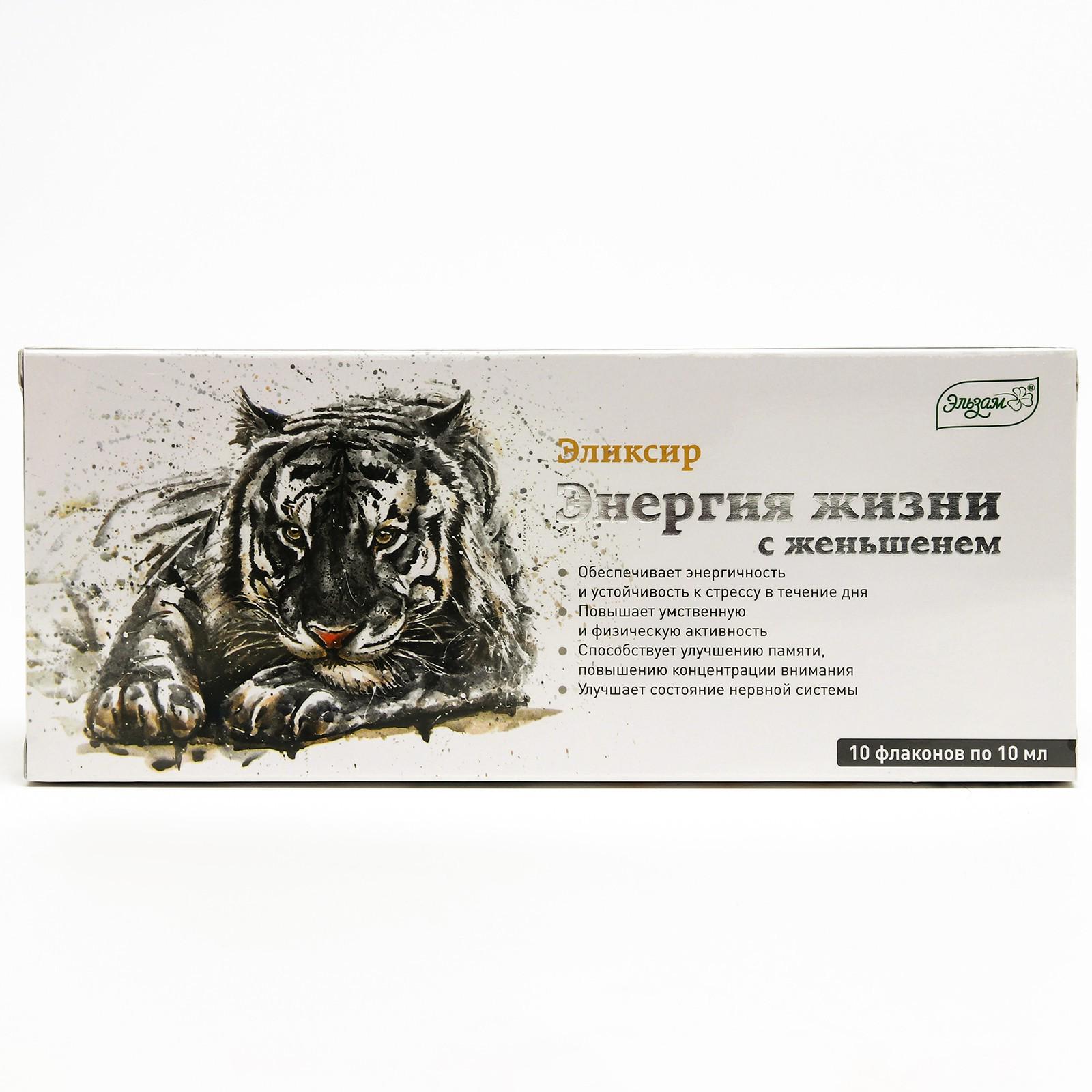 Эликсир «Эльзам. Энергия жизни» с женьшенем и витамином С, 10 флаконов по 10 мл