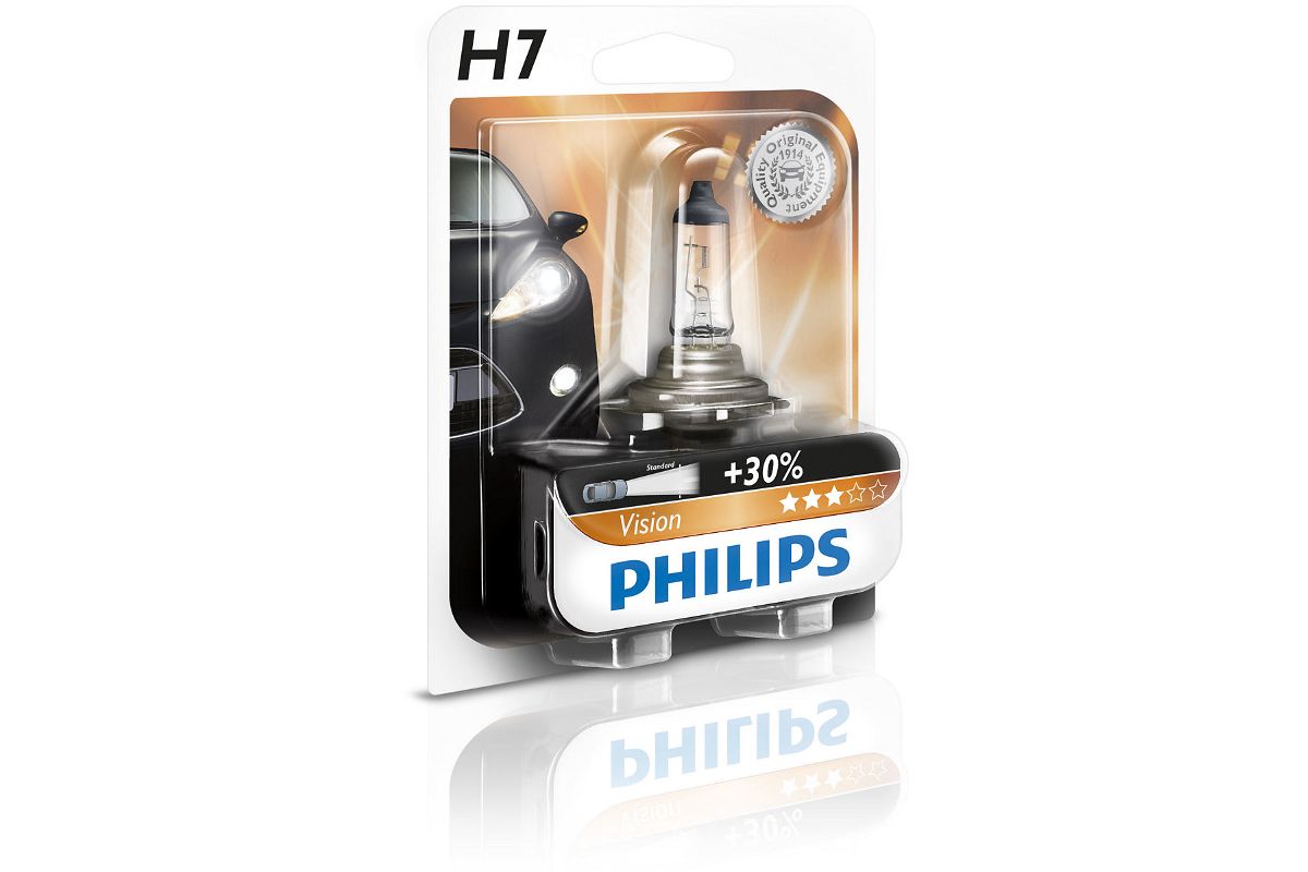Автолампа H7 (55) PX26d+30% PREMIUM (блистер) 12V PHILIPS /1/10 Лампа головного света PHILIPS 12972PRB1 Vision 30% H7 блистер 1шт. Лампа цок. H7 На 30% больше света