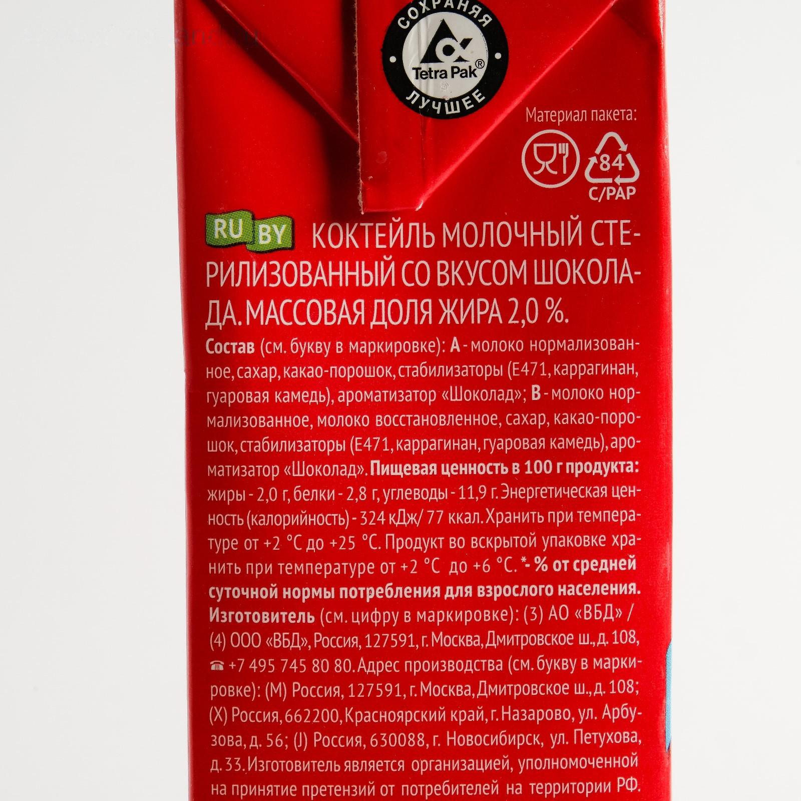 Коктейль молочный ЧУДО шоколад 2% 950г