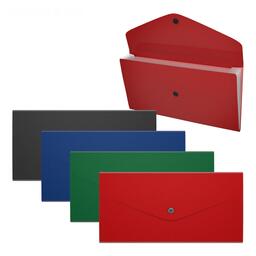 Папка-конверт на кнопке формата Travel из высококачественного непрозрачного пластика с текстурой поверхности "песок", на которой не видно отпечатков пальцев и мелких царапин.