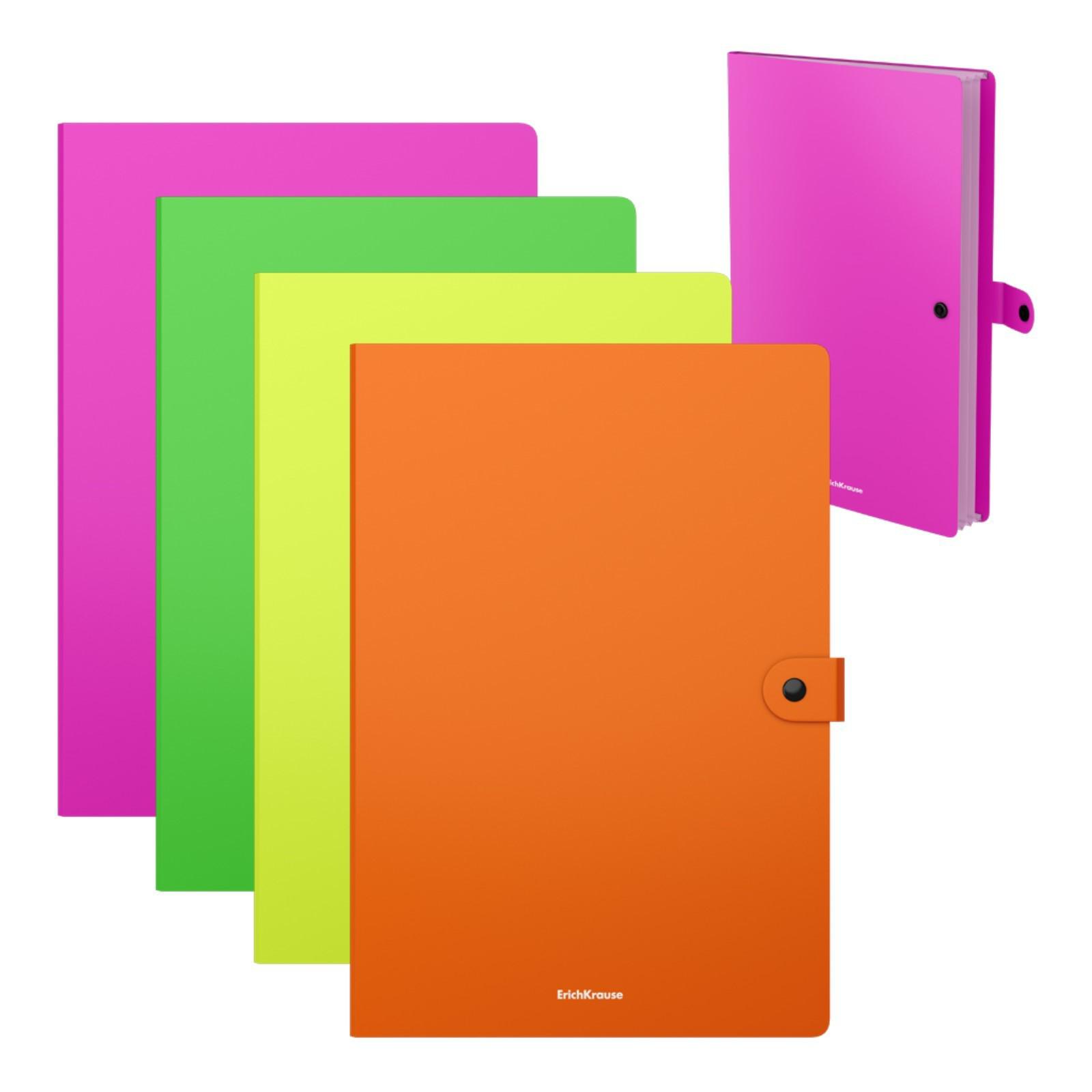 Папка-картотека на кнопке А4, ErichKrause Matt Neon, с 3 отделениями, до 150 листов, МИКС