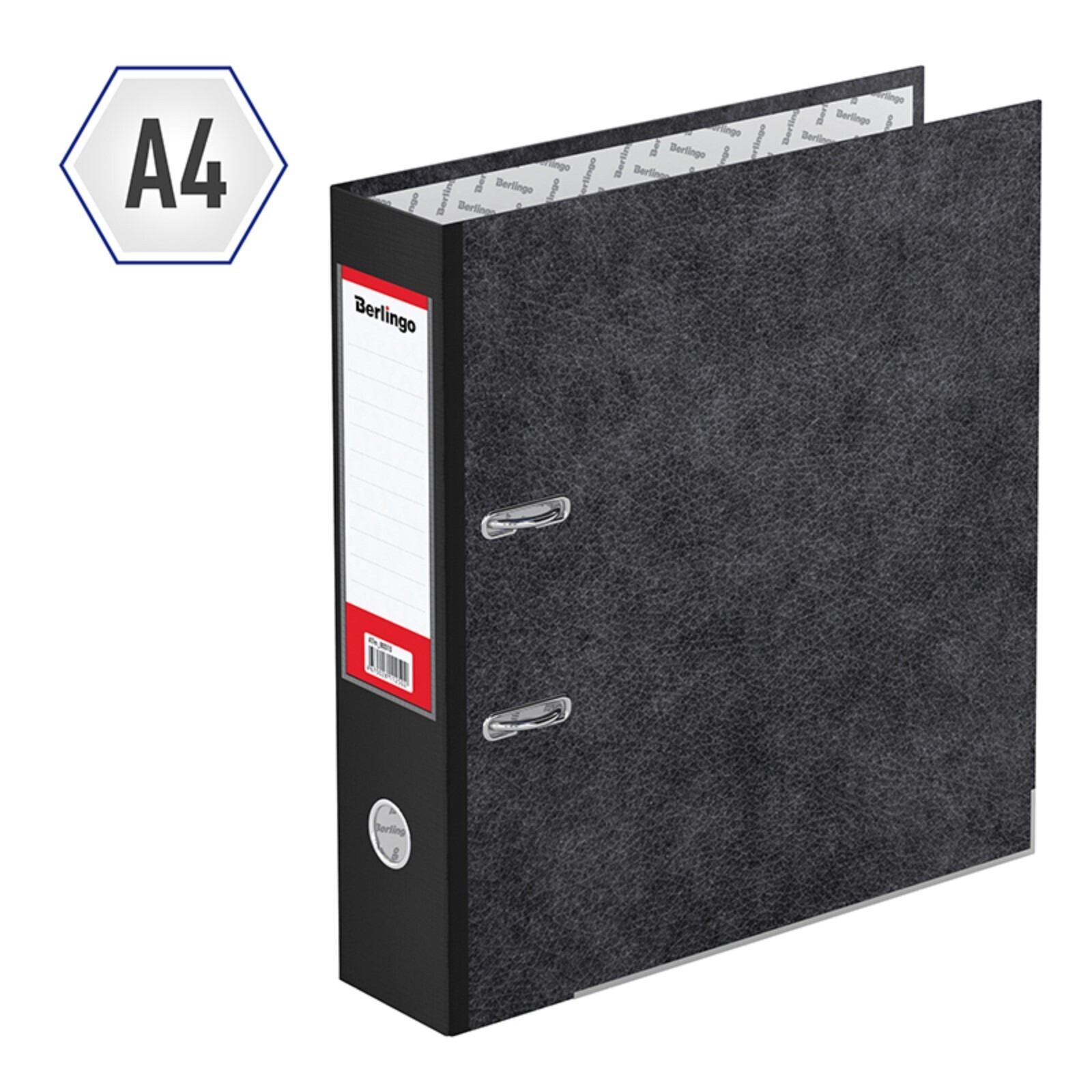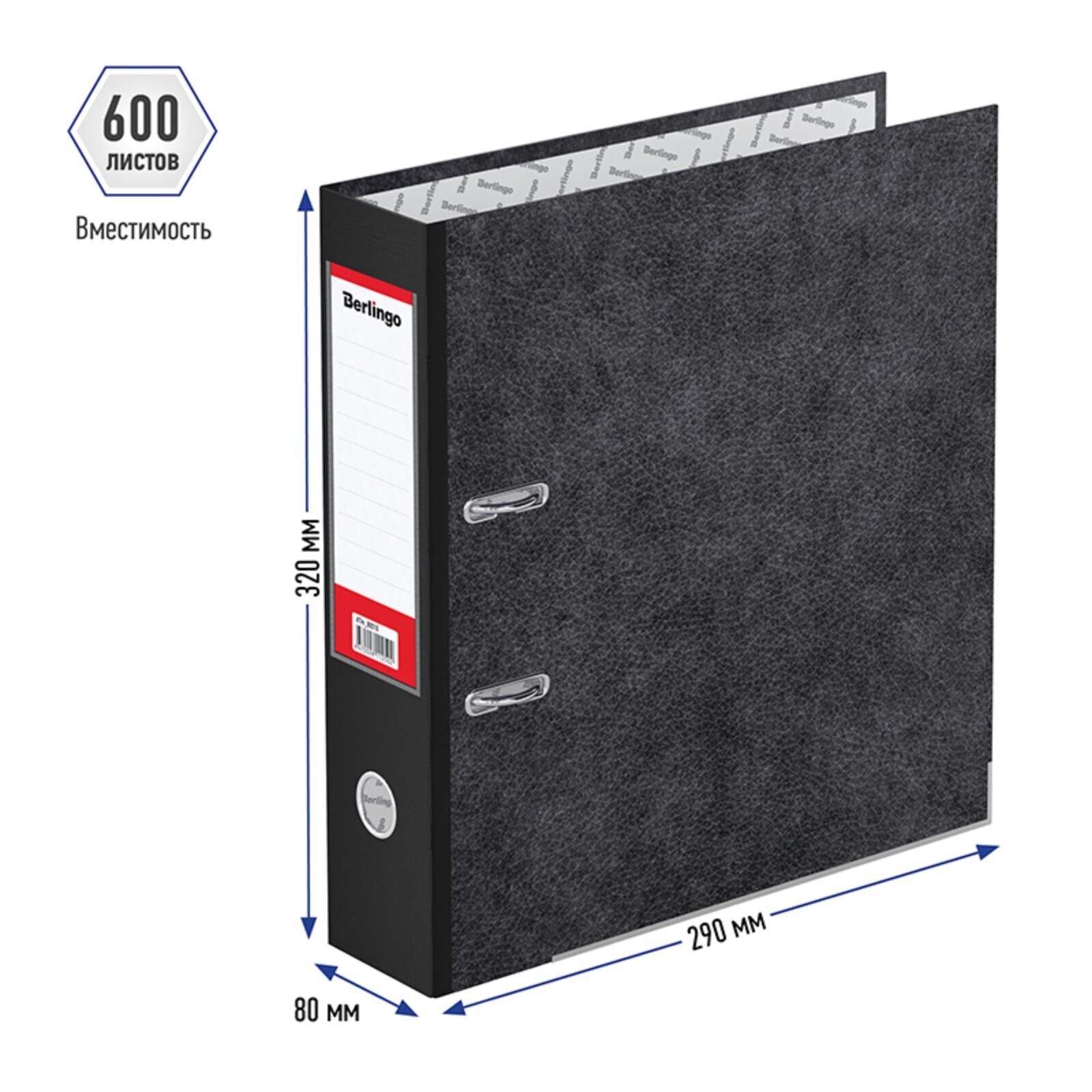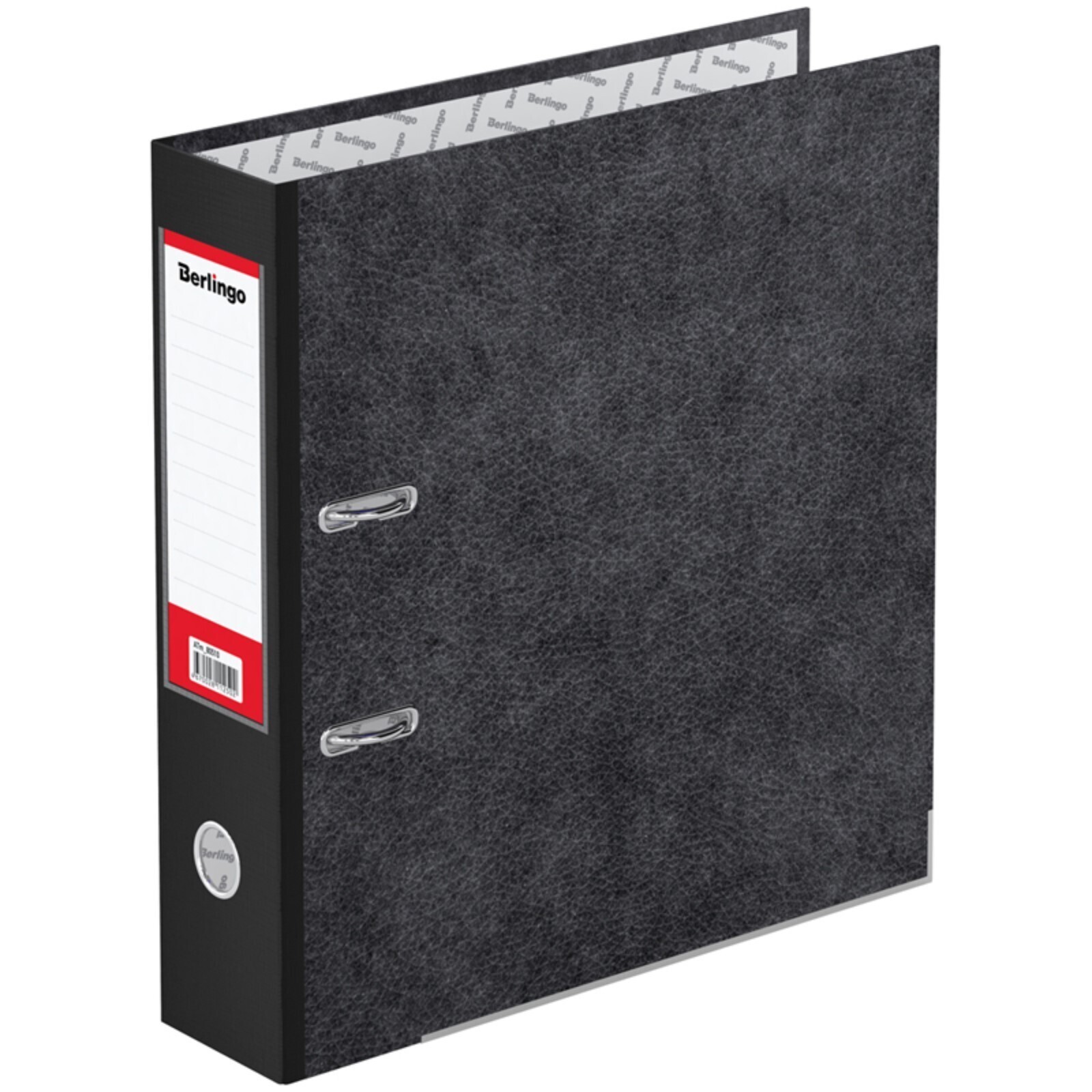 Папка-регистратор А4 80мм Berlingo "Hyper" мрамор, с карм. на кор., ниж метал. кант, черн