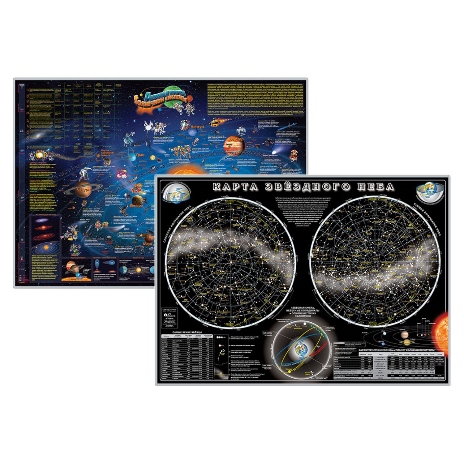 Астрономическая карта АГТ Геоцентр Солнечная система и Звездное небо для детей настольная 59х42 см GT2844N