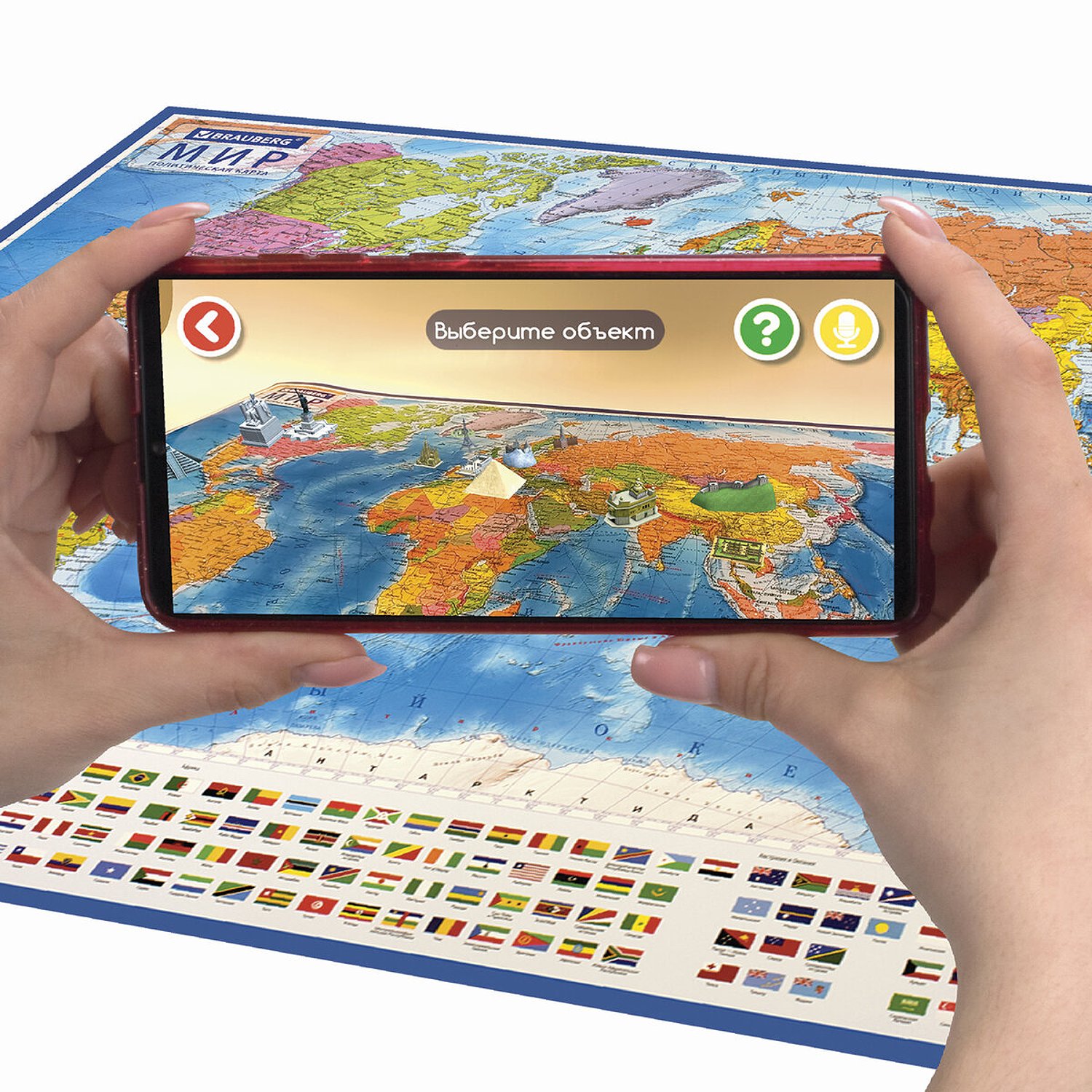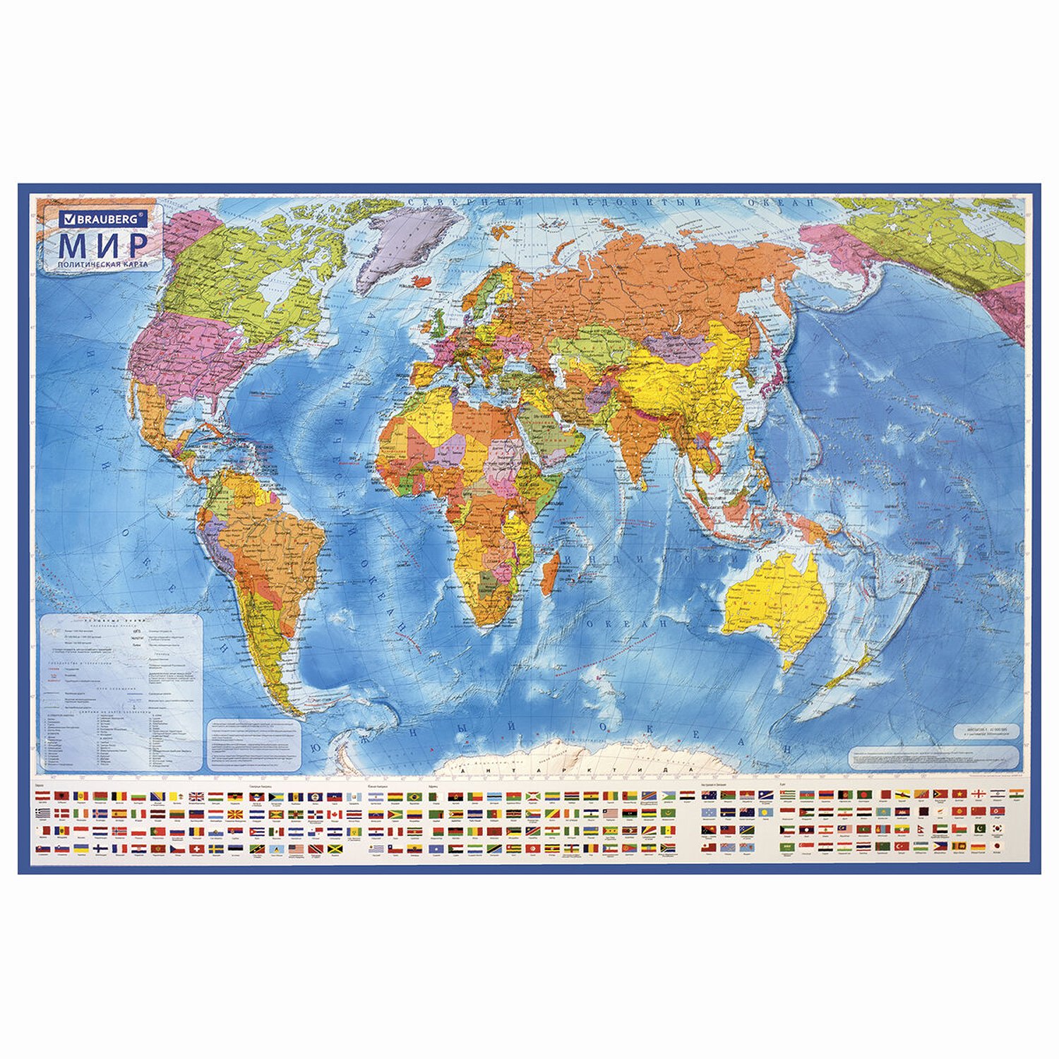 Карта мира Brauberg политическая 101х70 см 1:32М с ламинацией интерактивная в тубусе 112382