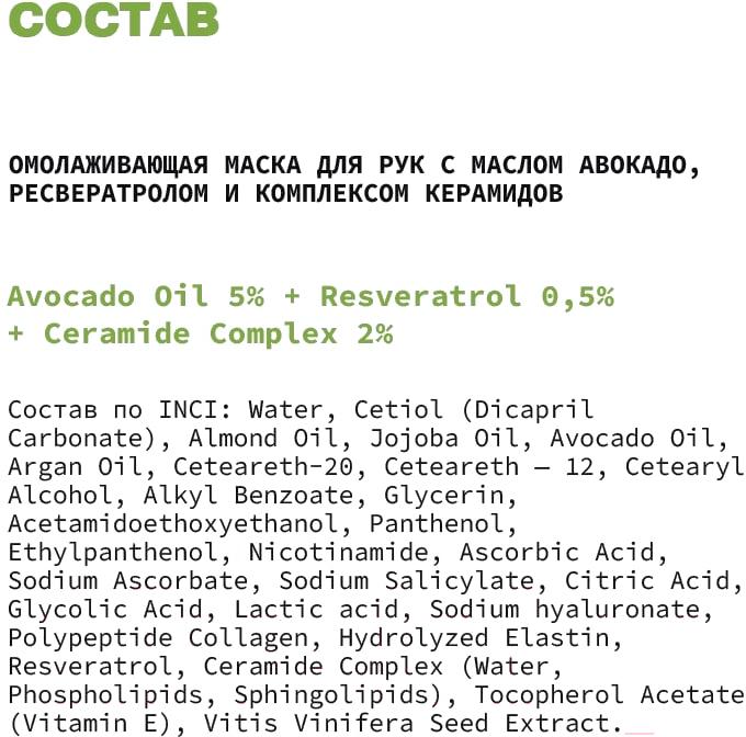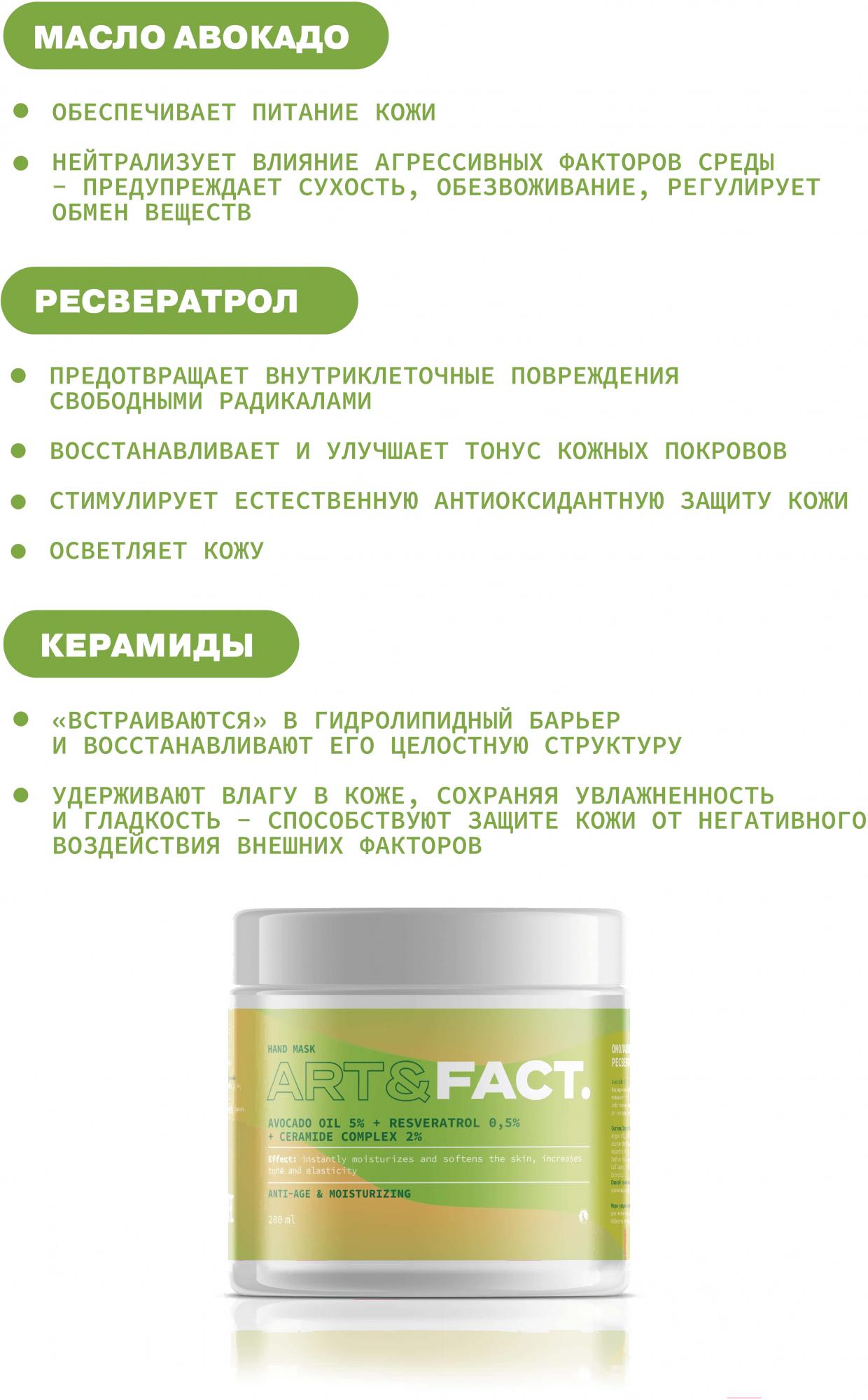 Маска для рук Art&Fact Avocado Oil 5% + Resveratrol 0.5% омолаживающая (200мл)