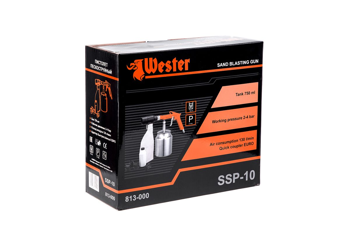 WESTER SSP-10 – пескоструйный пневматический пистолет для обработки поверхностей шлифзерном или песком. Используется для выравнивания, шлифования, удаления ржавчины и старой краски или матирования. Предназначен для работы при температуре от +5 до +35° С и относительной влажности воздуха не выше 80%.