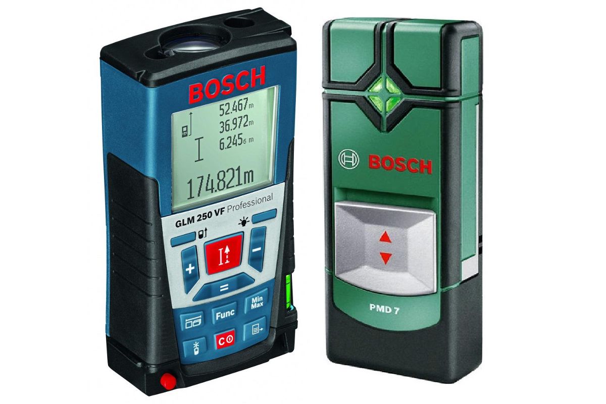 В состав набора входят: Дальномер лазерный BOSCH GLM 250 VF (0.601.072.100) дальность 0.05-250м, точность ±1мм прицел, Детектор BOSCH PMD7 сталь-70мм медь-60мм электропроводка-50мм 3x1.5В ААА универальный