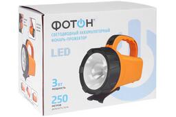 ФОТОН 22997 РB-5200 – аккумуляторный светодиодный фонарь-прожектор. Поможет осветить объект или подать световой сигнал. Будет полезен на даче и в загородном доме, пригодится в походе, во время рыбалки, охоты и т.д. Поставляется с наплечным ремнём и зарядным устройством. Мощность светодиода – 3 Вт. Примерный срок службы – до 100 000 часов.