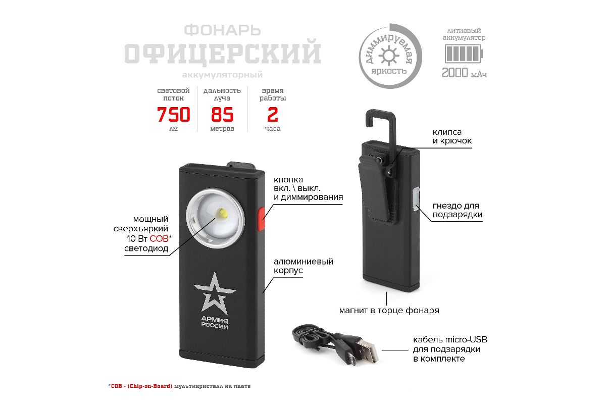 Фонари АРМИЯ РОССИИ RA-802 (Б0036609) универсальный Офицерский (10 Вт, алюм. диммер, магнит, крюч)