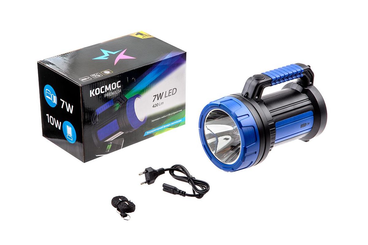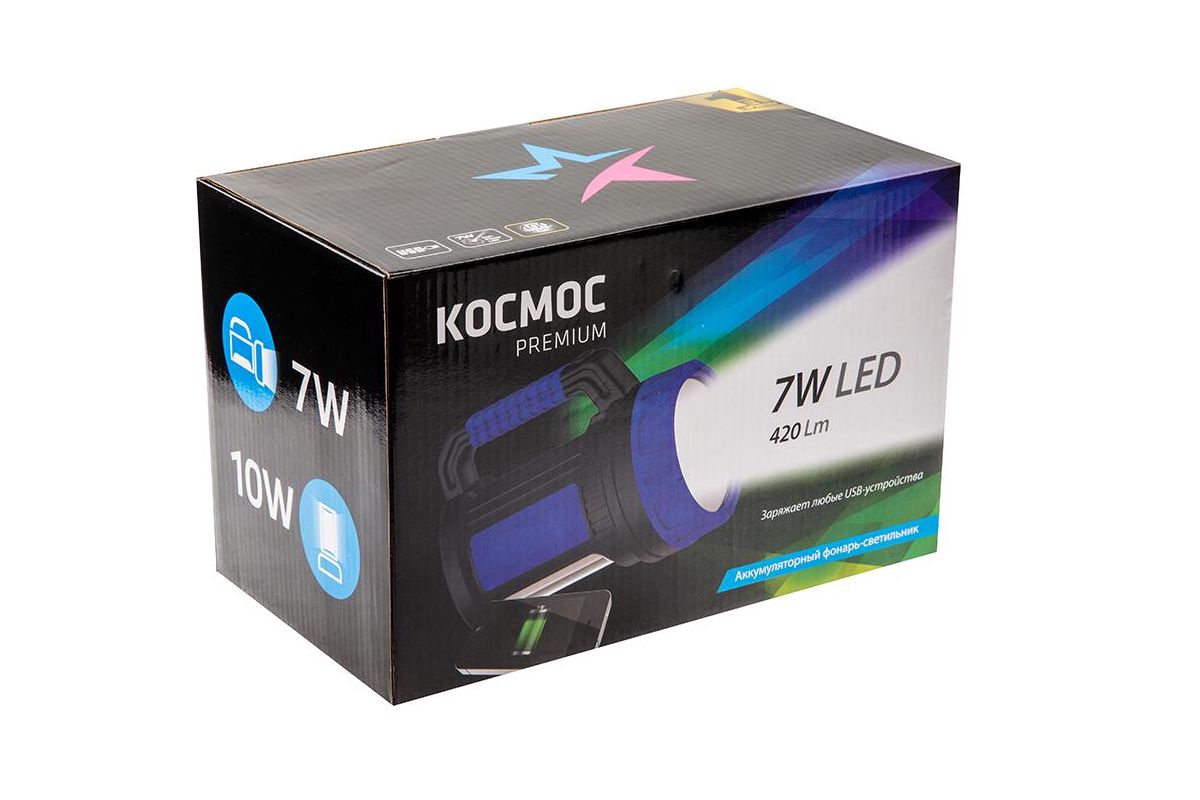 Фонарь светодиодный КОСМОС 479994 KOSACCU9107WUSB аккум. premium 4W, LED, ЗУ 220/12В USB