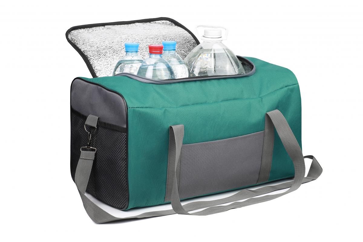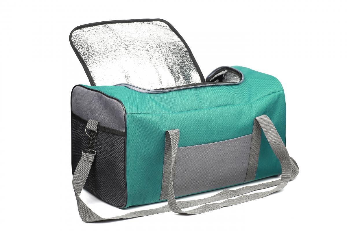 Термосумка для еды и напитков. Внутреннее пространство состоит из фольгированной газонаполненной пены, которая отлично сохраняет тепло и холод. Сама сумка сшита из прочного материала, не подверженного высвечиванию и истиранию.