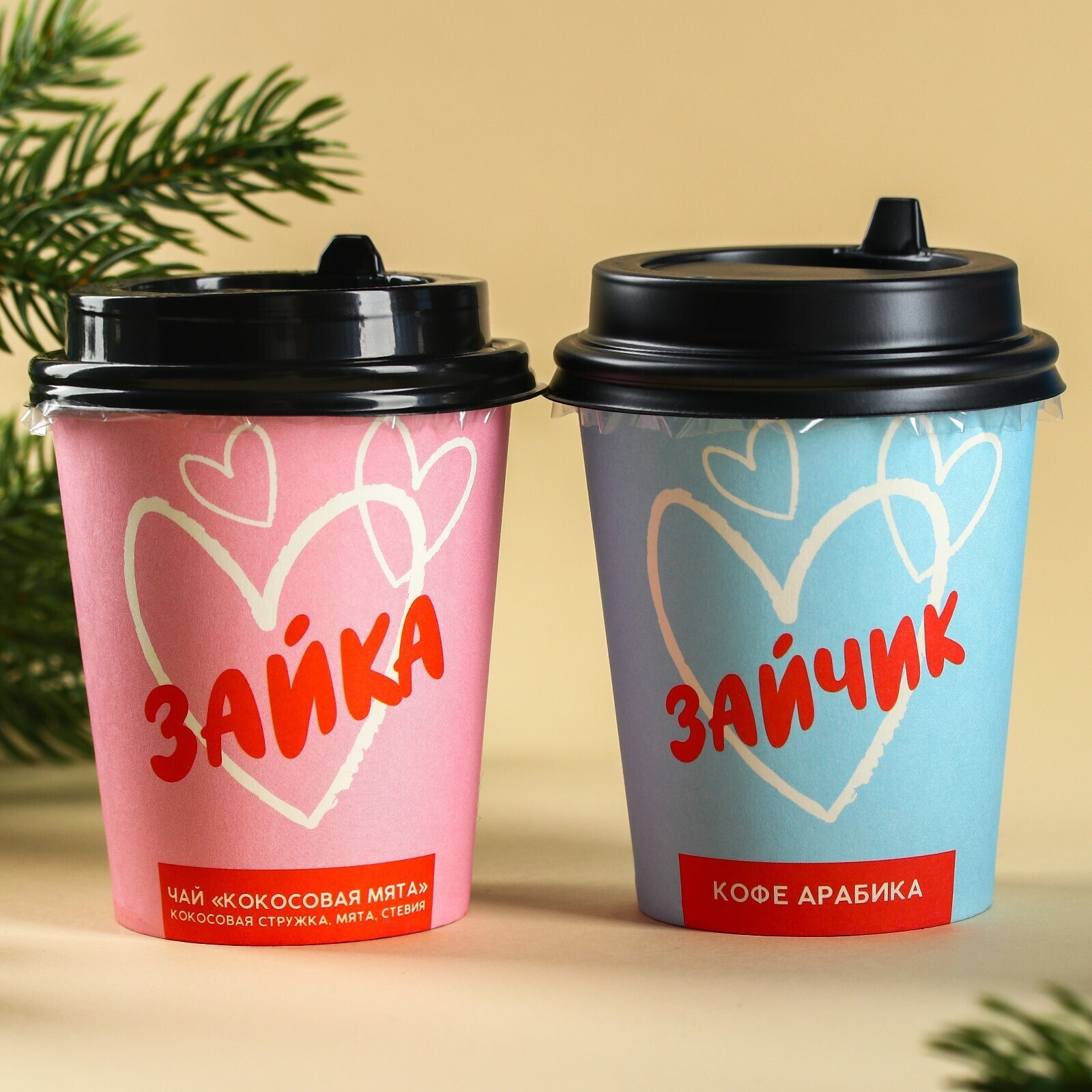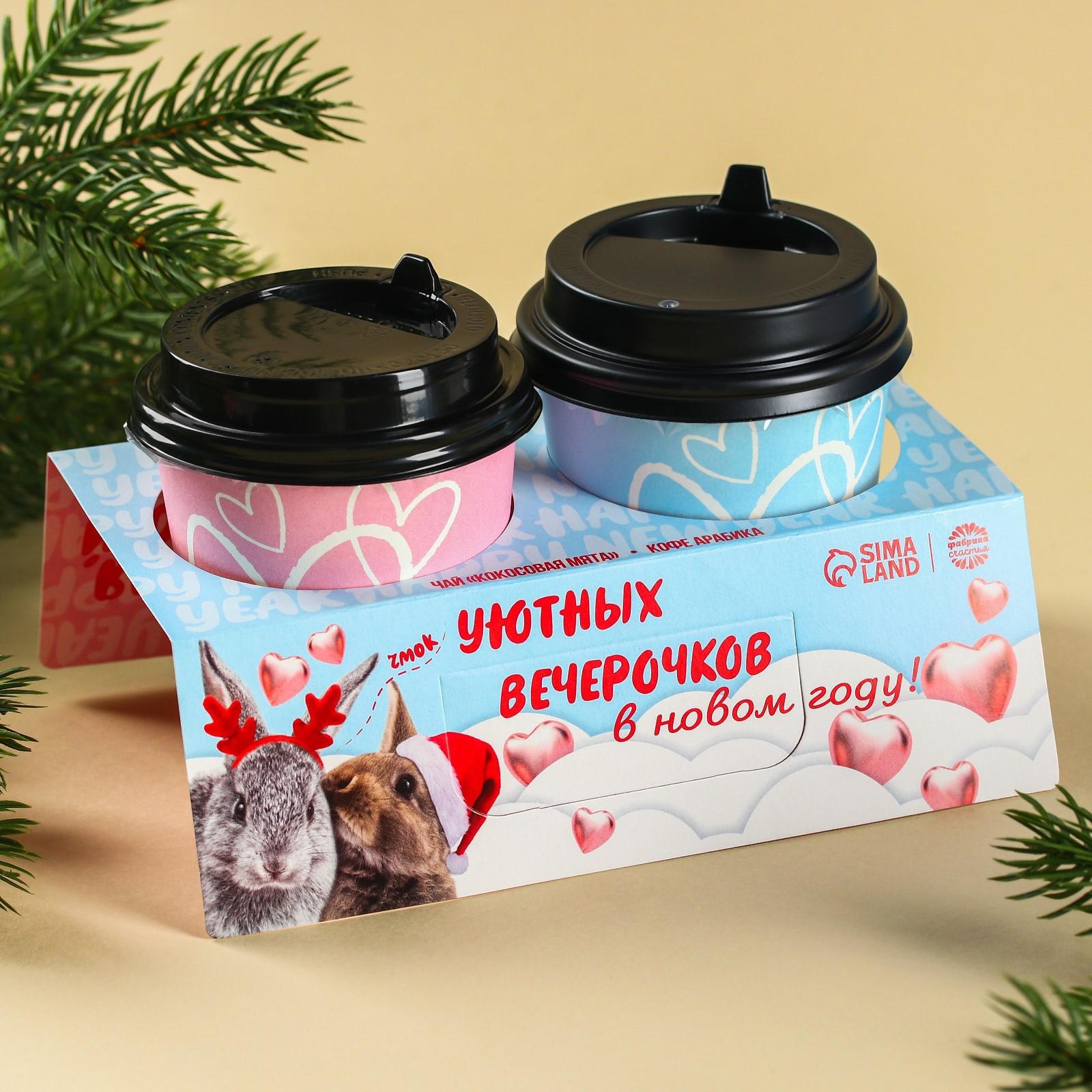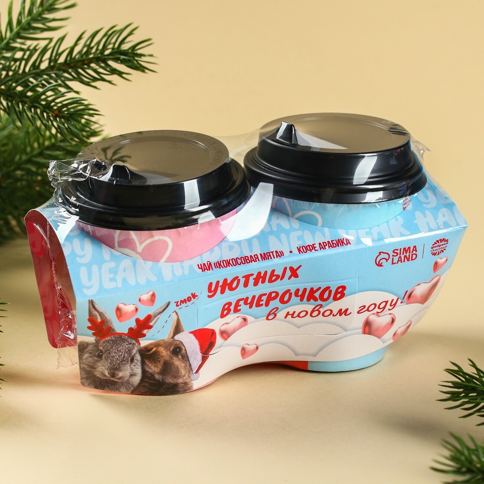 Подарочный набор «Уютных вечерочков»: кофе 100% арабика 1 шт. х 8 г., чай зелёный с кокосом и мятой 1 шт. х 3 г.