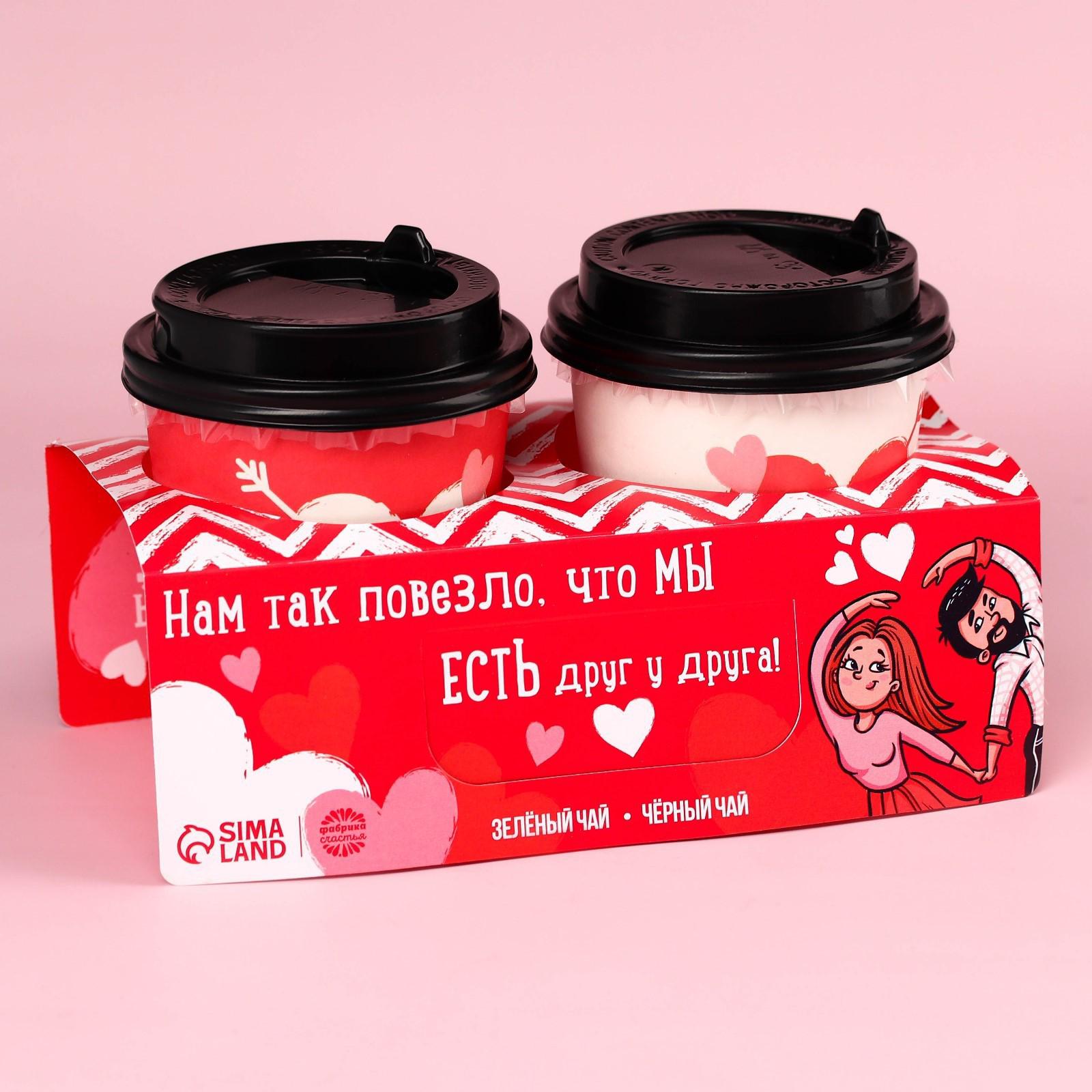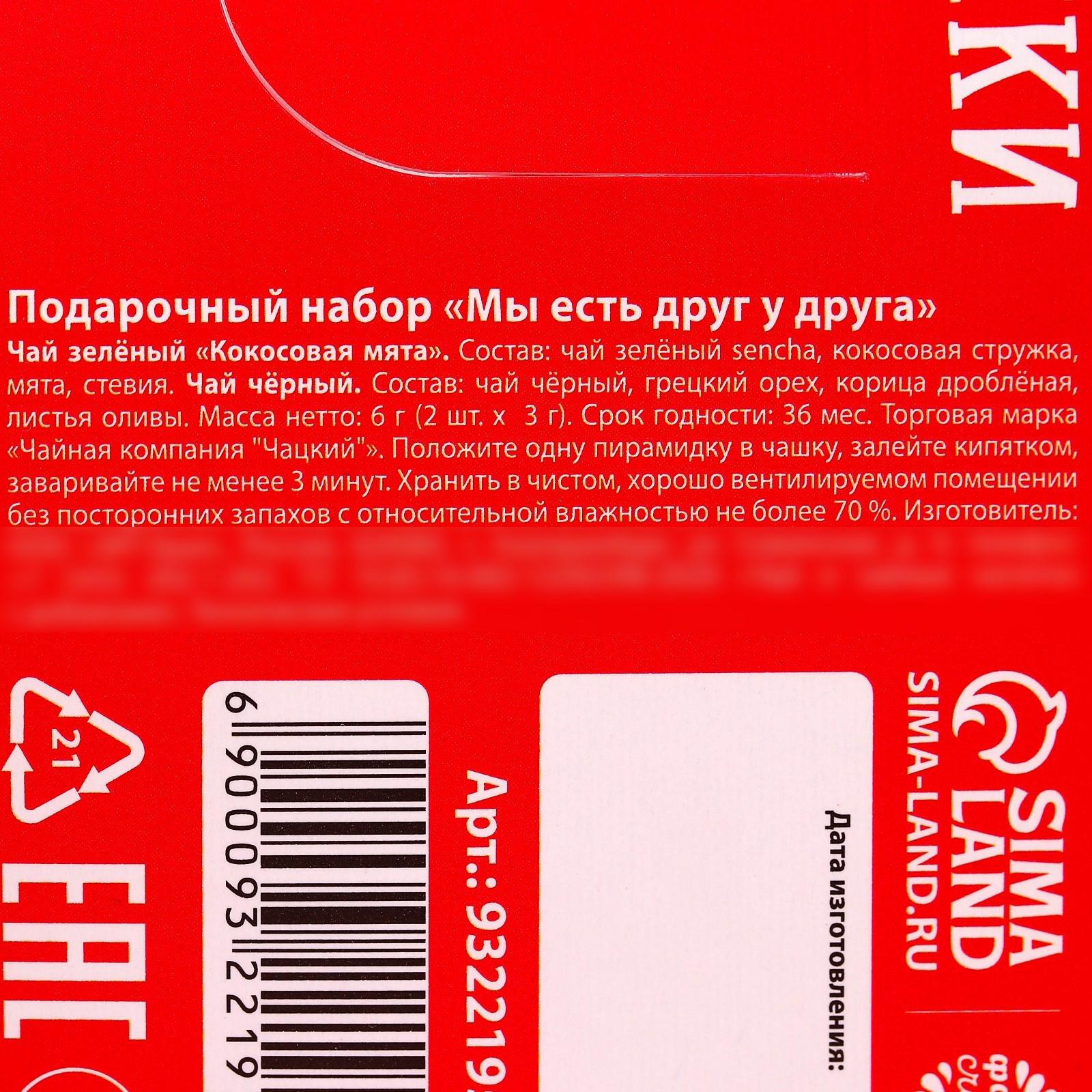 Подарочный набор «Есть друг у друга»: зелёный чай сенча со вкусом кокосовой мяты 3 г., чёрный чай с корицей и грецким орехом 3 г.