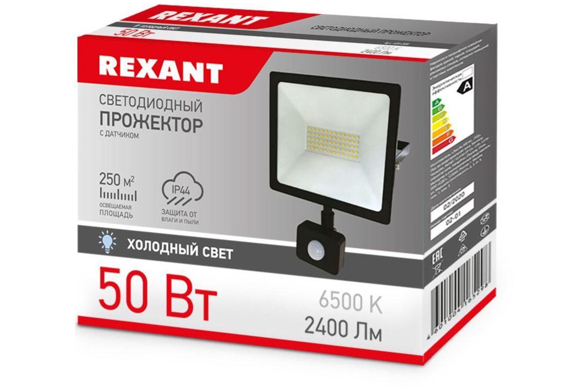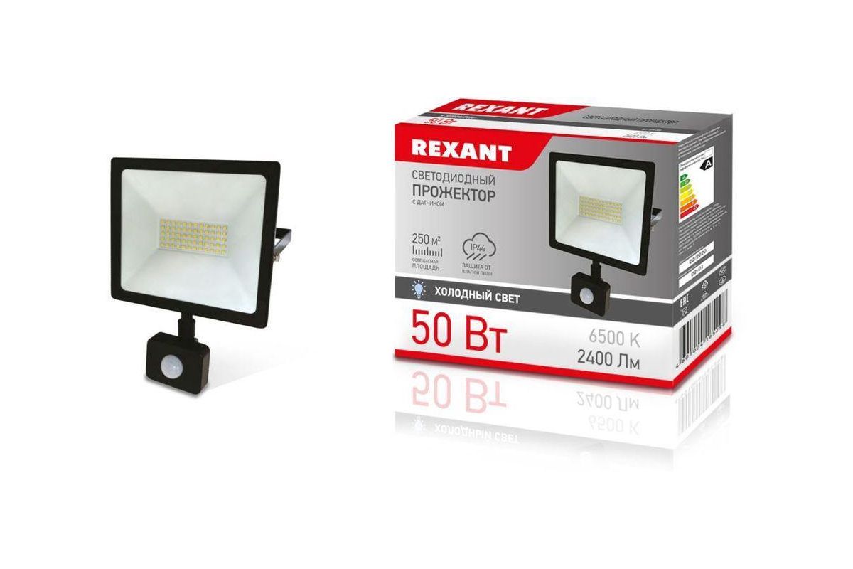 Прожектор светодиодный REXANT 605-009 с датч. движ. 50 Вт 200–260В IP44 4000 лм 6500 K хол. свет