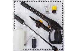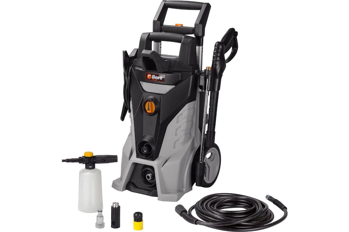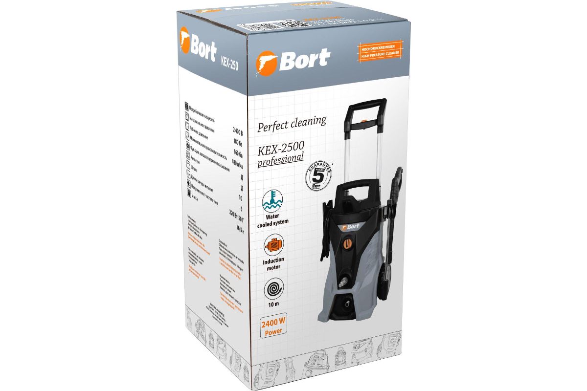Профессиональная мойка высокого давления BORT KEX-2500 станет отличным помощником в поддержании чистоты в загородном доме и на прилегающем участке, в мастерской и гараже. Модель оснащена емкостью для моющего средства, что позволяет справиться даже с самыми стойкими загрязнениями, например, на поверхности автомобиля или велосипеда. Мощный индукционный мотор обеспечивает высокую производительность и позволяет применять прибор не только в бытовых условиях, но и на предприятиях. Водяное охлаждение двигателя и функция автоматического отключения при перегреве гарантируют надежную и долговременную работу. Увеличенная до 10 метров длина напорного шланга в сочетании с системой быстрой смены насадок «QuickFix» способствует легкой и комфортной работе с любыми поверхностями. Функция самовсасывания дает возможность набирать воду из бочки, бассейна или канистры, что особенно важно при отсутствии водопровода. Большие колеса обеспечивают маневренность и проходимость, а складывающаяся рукоятка — удобство при транспортировке и хранении. На корпусе предусмотрен отсек для аксессуаров. В комплект входит пистолет-распылитель, удлиненный напорный шланг, пеногенератор, коннектор для водопровода, фильтр.