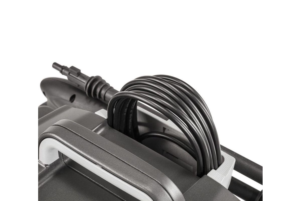 ПВХ-шланг высокого давления защищён от перекручивания. Выдерживает нагрузки в момент запуска и остановки мойки.