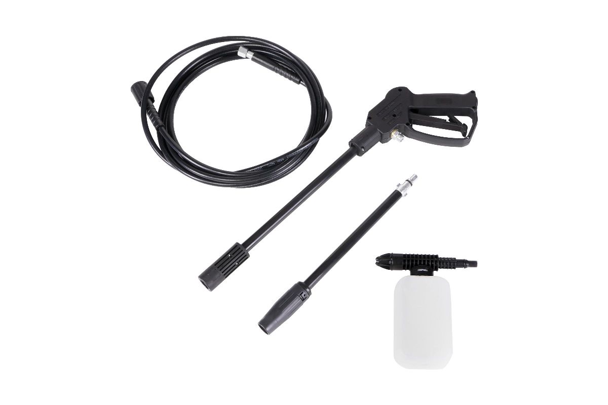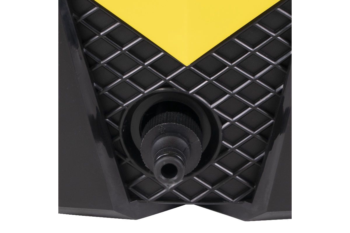 На корпусе есть крепления для аксессуаров и шланга. Мойка не занимает много места при хранении.