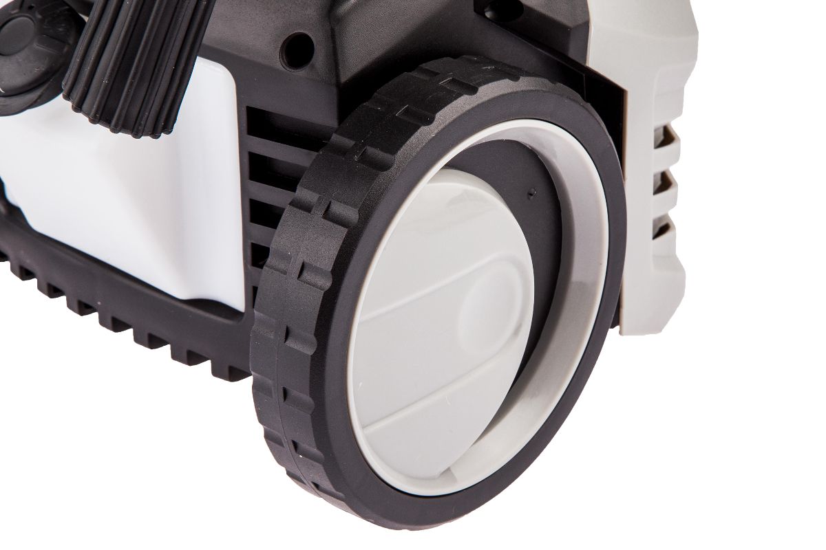 Мойка оснащена большими колёсами и разборной ручкой. Агрегат удобно катить за собой.