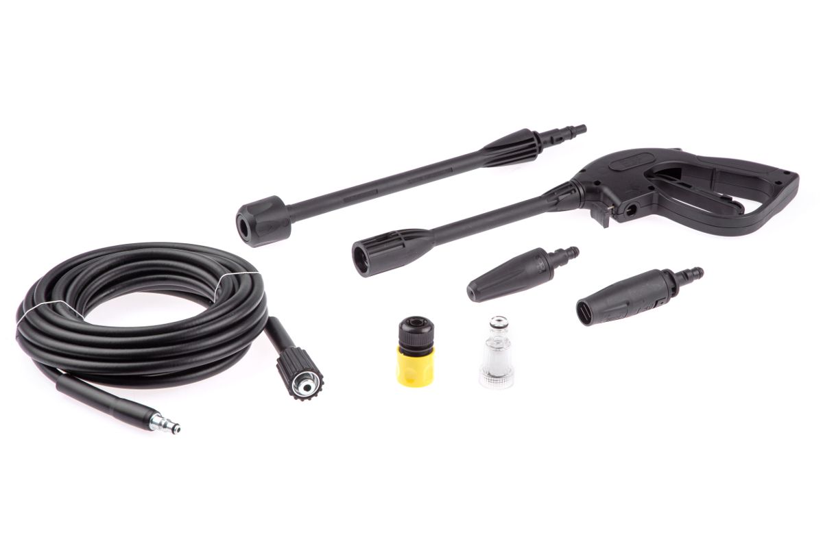 Длина шланга – 8 м, шнура – 5 м. Не придётся часто переставлять мойку.
