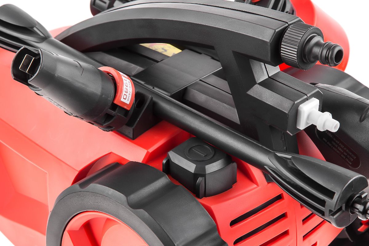 Благодаря колёсам удобно передвигать мойку за собой. Не придётся носить её в руке во время работы.