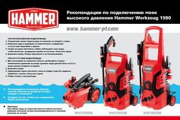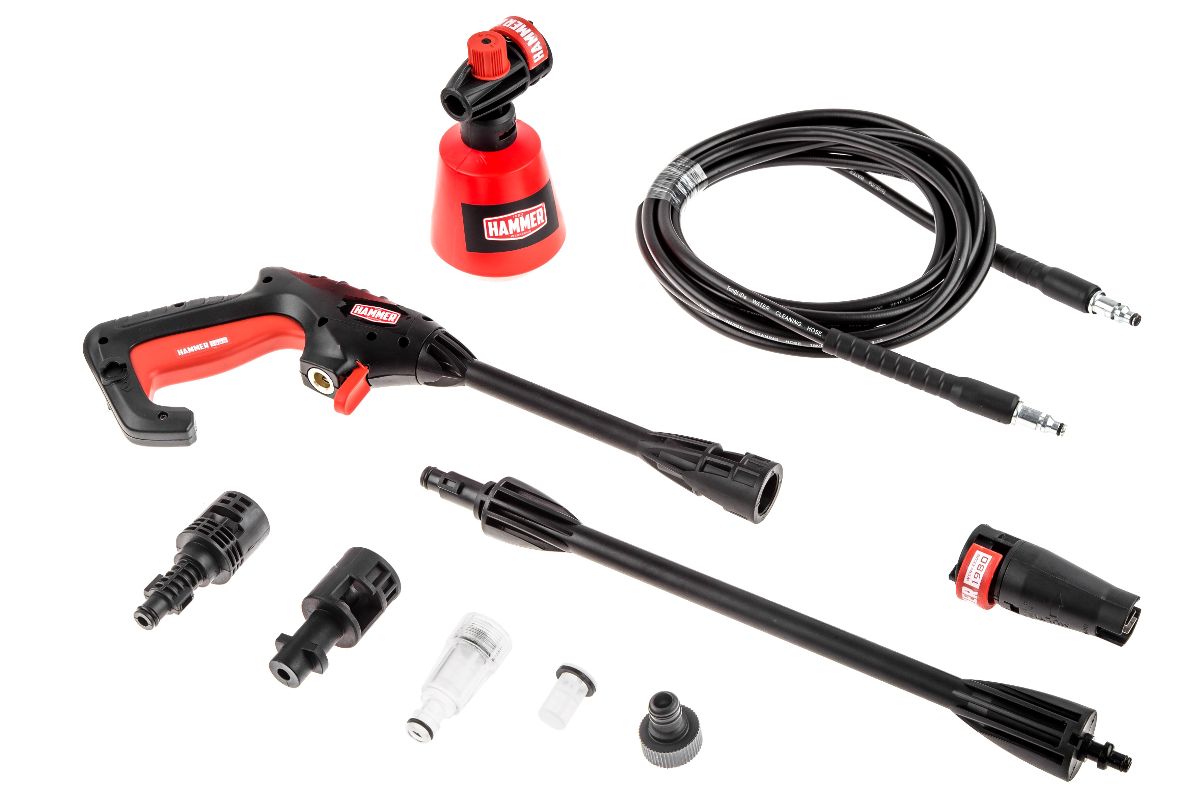 HAMMER MVD1200B – компактная мойка высокого давления. Мощность двигателя – 1200 Вт. Давление воды на выходе – 82 бар. Подойдёт для мойки слабых загрязнений окон, стен, велосипедов, автомобилей и т.д. Работает от стандартной бытовой розетки 220 В.