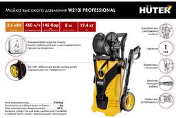 - Мойка Huter W210i PROFESSIONAL обладает очень большим ресурсом благодаря надёжному бесщёточному асинхронному электродвигателю и алюминиевой помпе с водяным охлаждением;