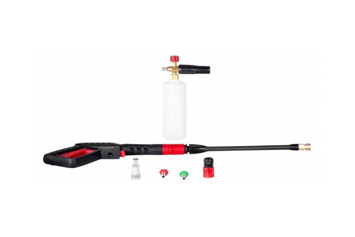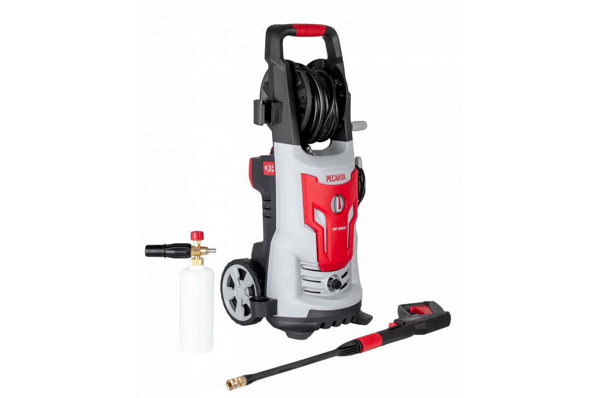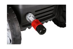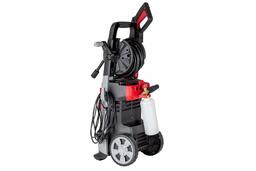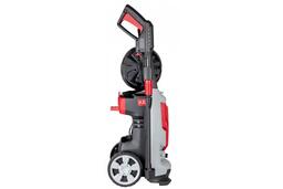 Мойка высокого давления для очистки садовых дорожек, автомобилей, фасадов зданий и других поверхностей. Имеет держатель для пистолета, обеспечивающий компактное хранение и барабан для намотки шланга. Для быстрого перемещения по территории оснащена колесами и рукояткой.