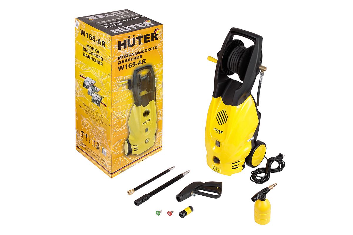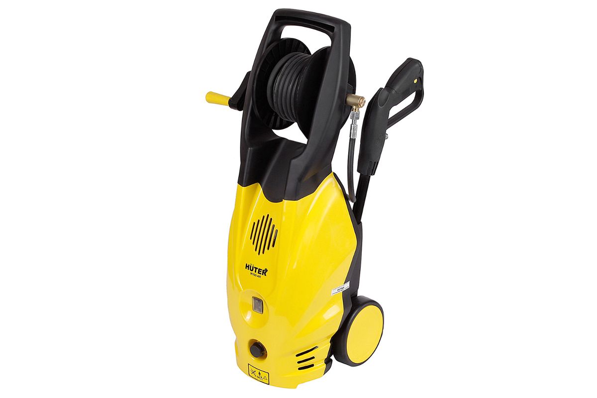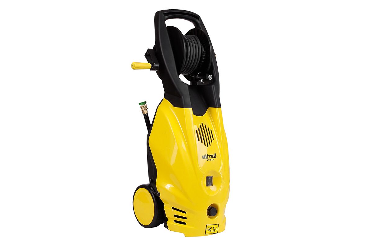 HUTER W165-AR – наиболее мощная (1,9 кВт) мойка высокого давления от производителя. Относится к бытовому классу и рекомендуется для нерегулярного использования в личных целях. В модели предусмотрено все для комфортной работы с аппаратом: есть ручка для переноски, колеса для перемещения по рабочей площадке, пистолет крепится на специальный держатель, шланг сматывается на катушку.