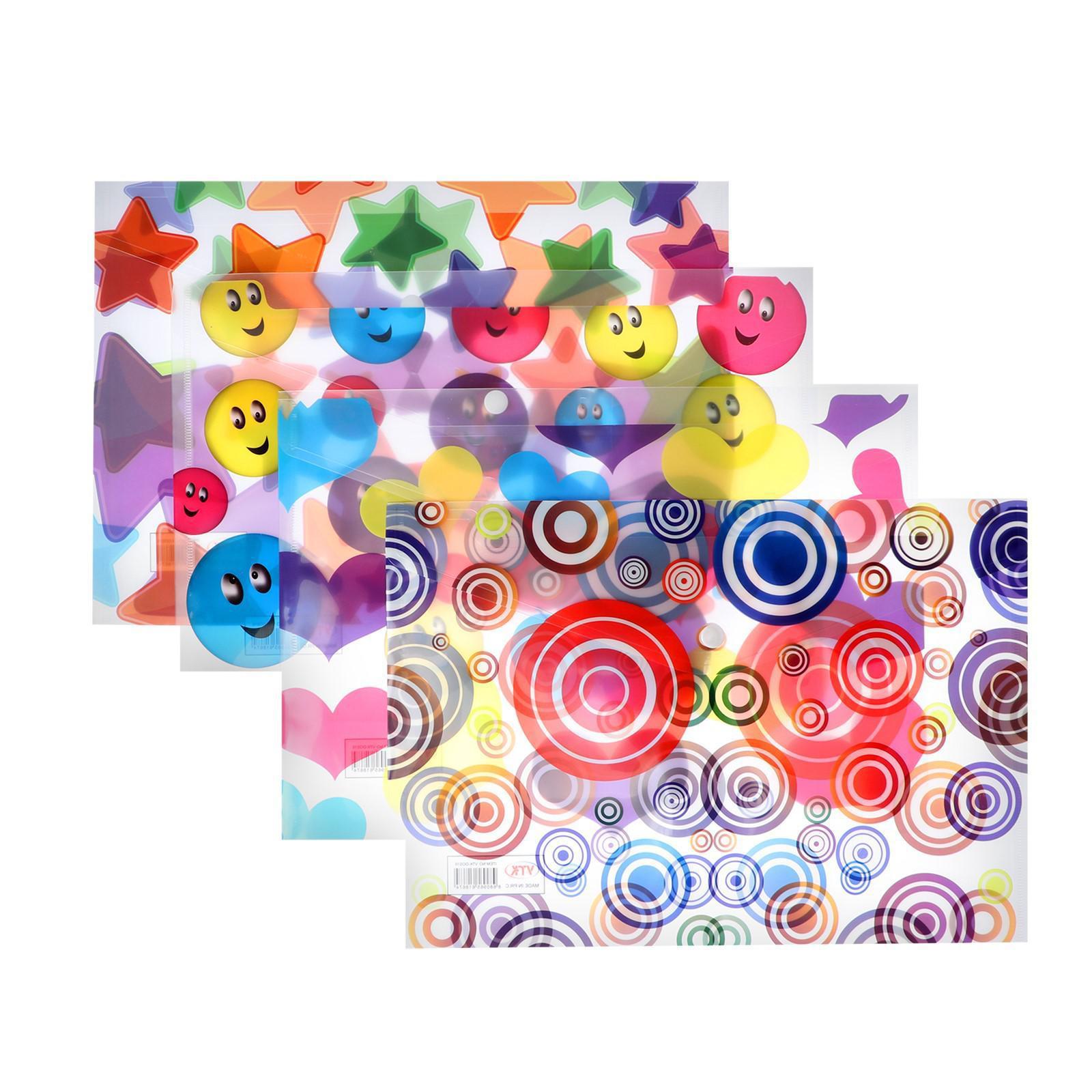Папка-конверт на кнопке "Ассорти" А4, 160 мкр, МИКС