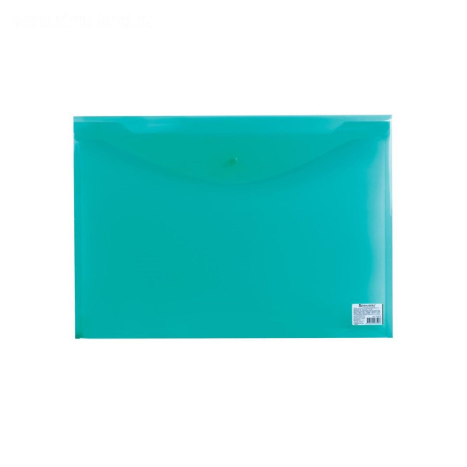 Папка-конверт на кнопке А3, 180 мкм, BRAUBERG, прозрачная, зелёная