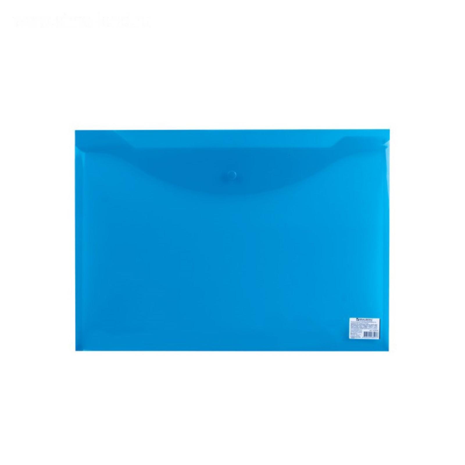 Папка-конверт на кнопке А3, 180 мкм, BRAUBERG, прозрачная, синяя