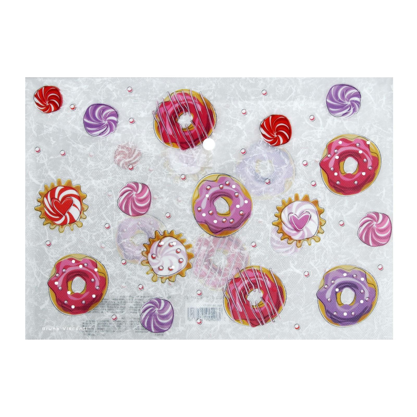 Папка-конверт на кнопке А4, 180 мкм «Сладкое настроение. Пончики», пластик