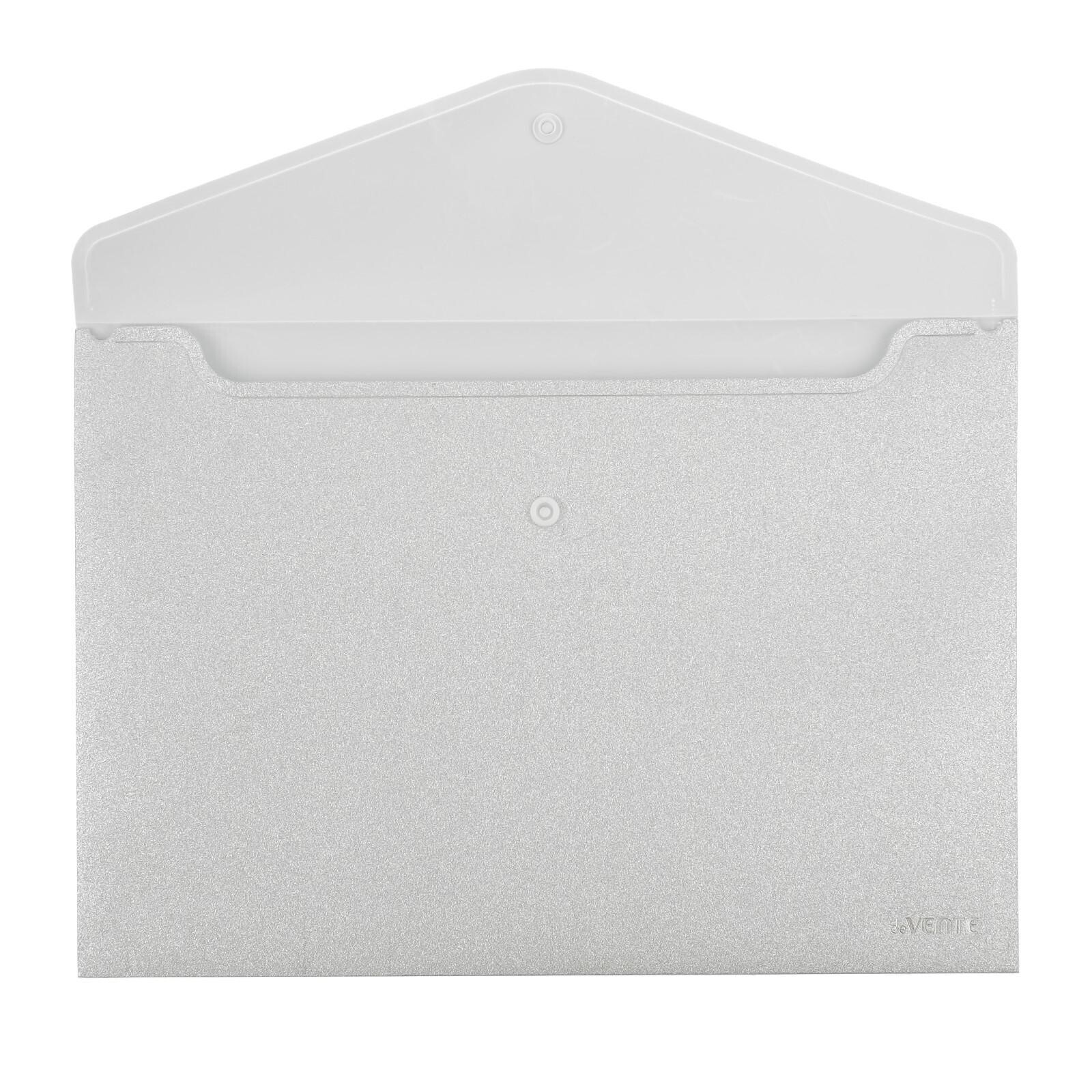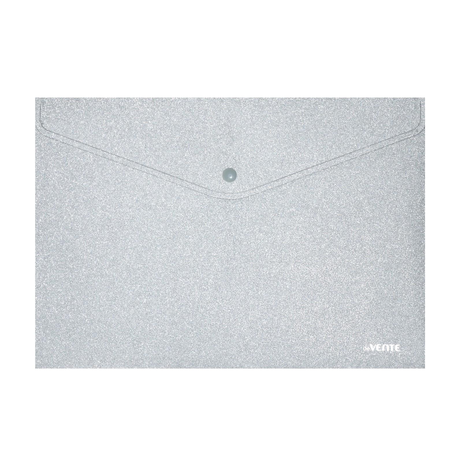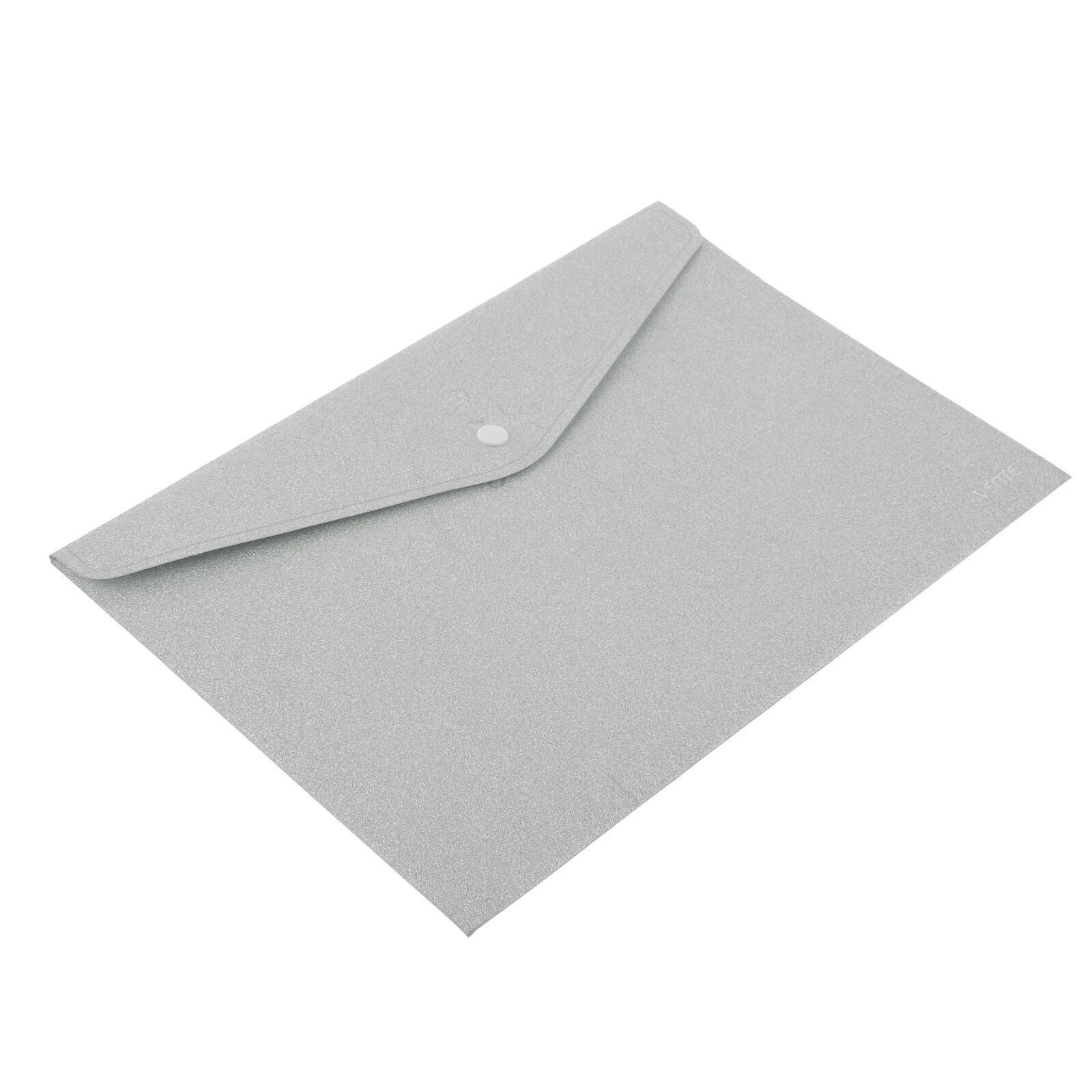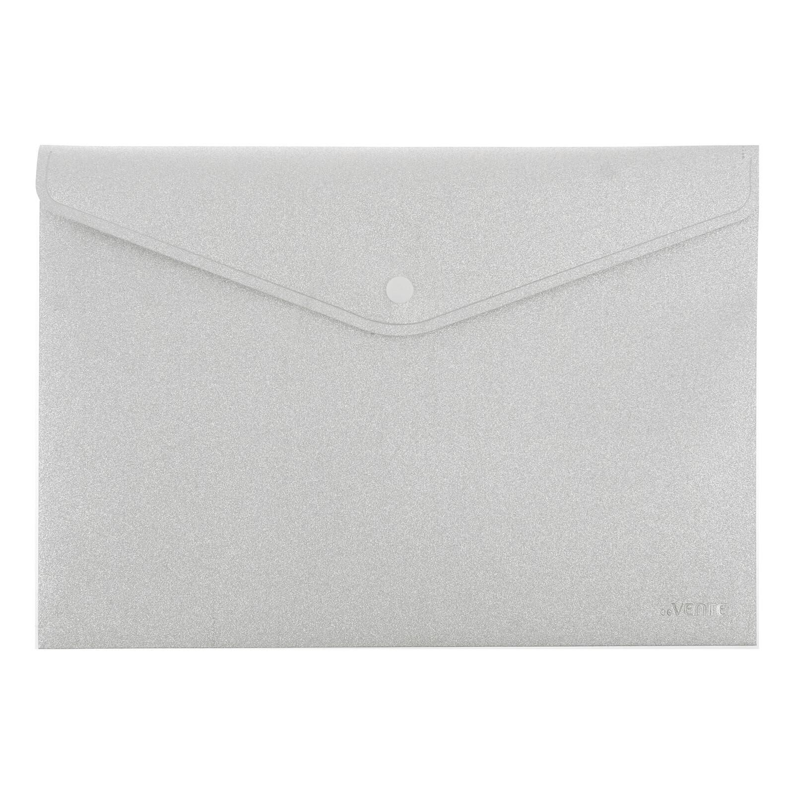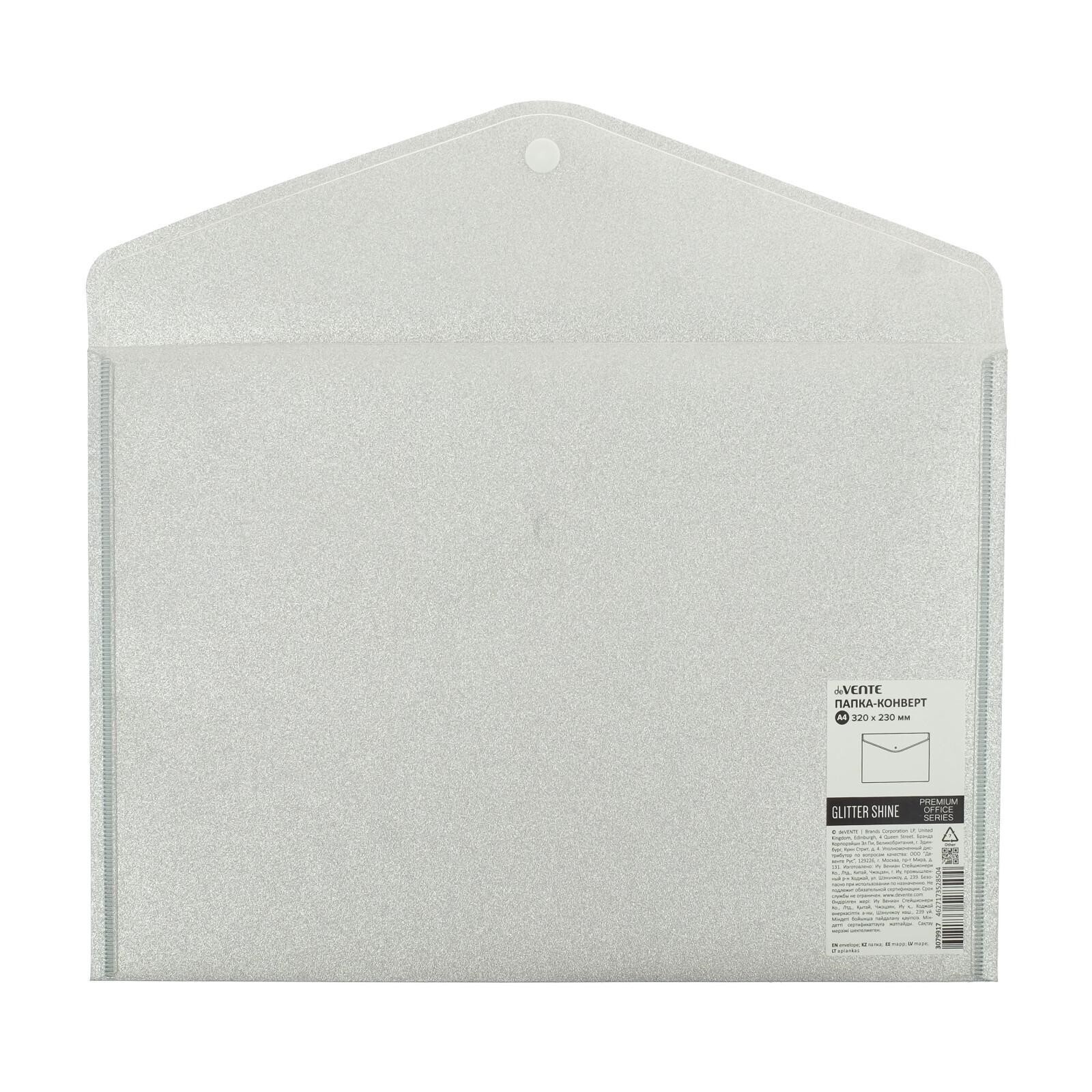Папка-конверт на кнопке "deVENTE. Glitter Shine" A4 (330x230 мм) 350 мкм, фактура "песок" индивидуальная маркировка, фактура с блестками, сверкающий серебристый.