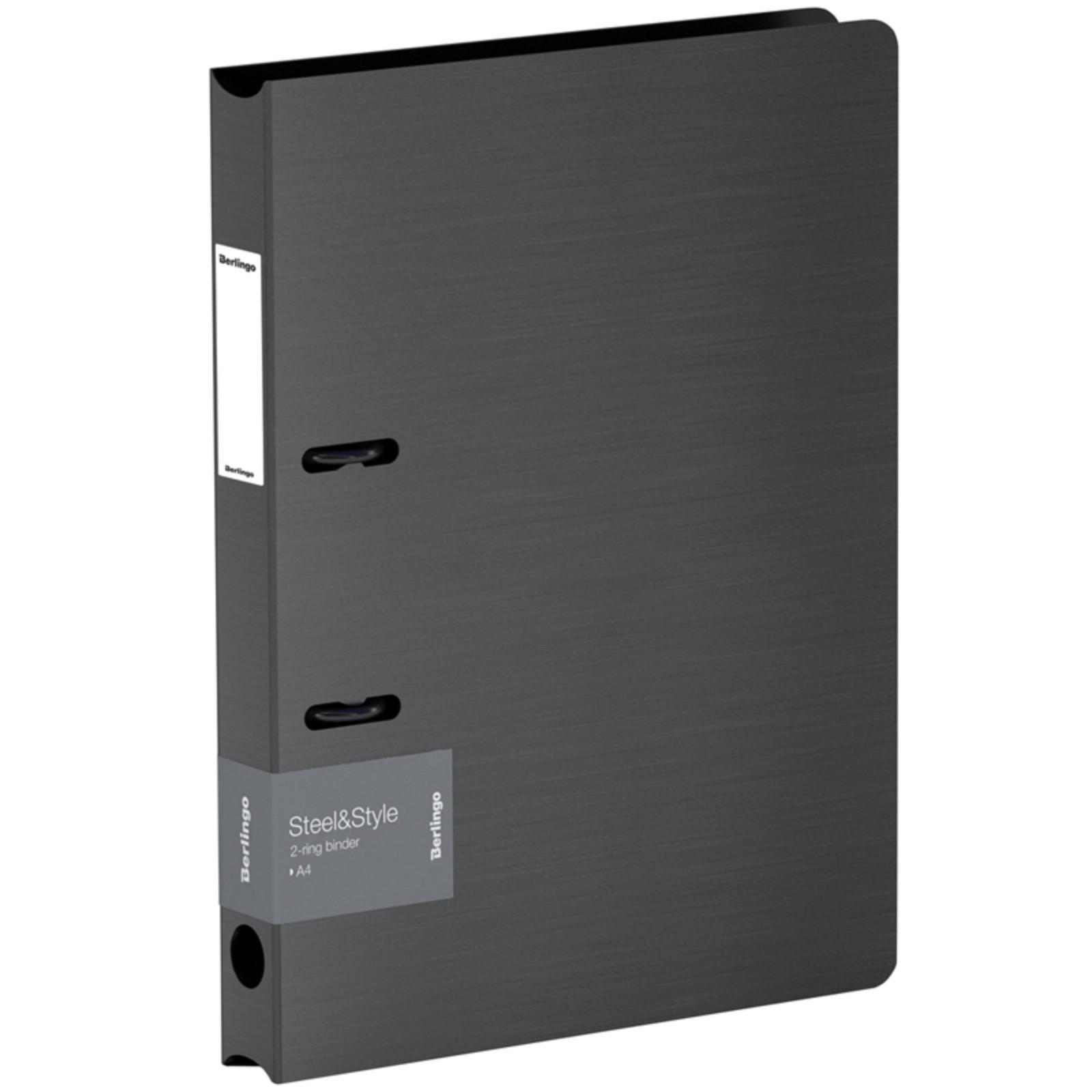 Папка на 2 кольцах А4 35мм Berlingo "Steel&Style", 2000мкм, D-кольца, пластик (полифом), черная 63