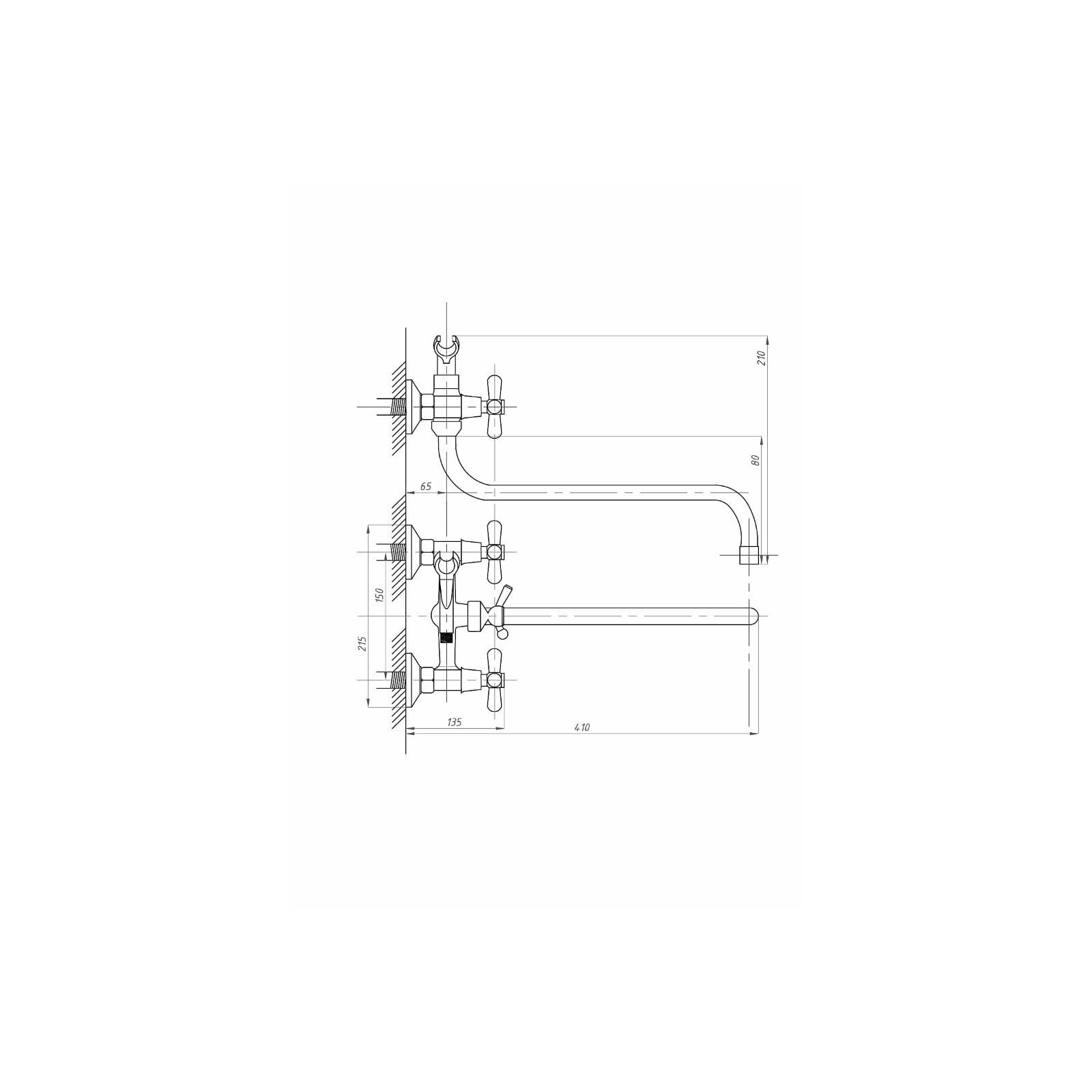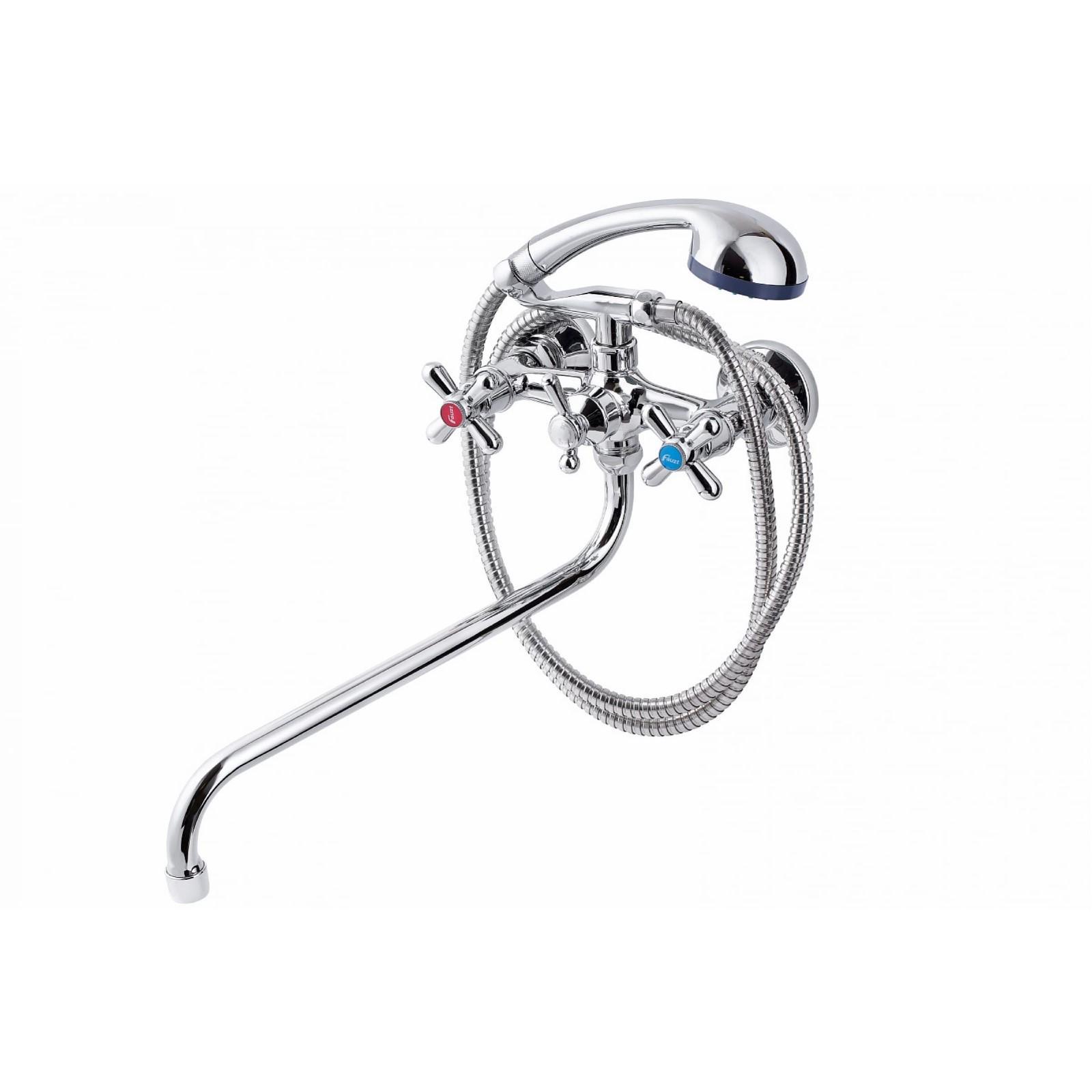Смеситель для ванны FAUZT FZs-428-03, двухвентильный, излив 340 мм, лейка, хром