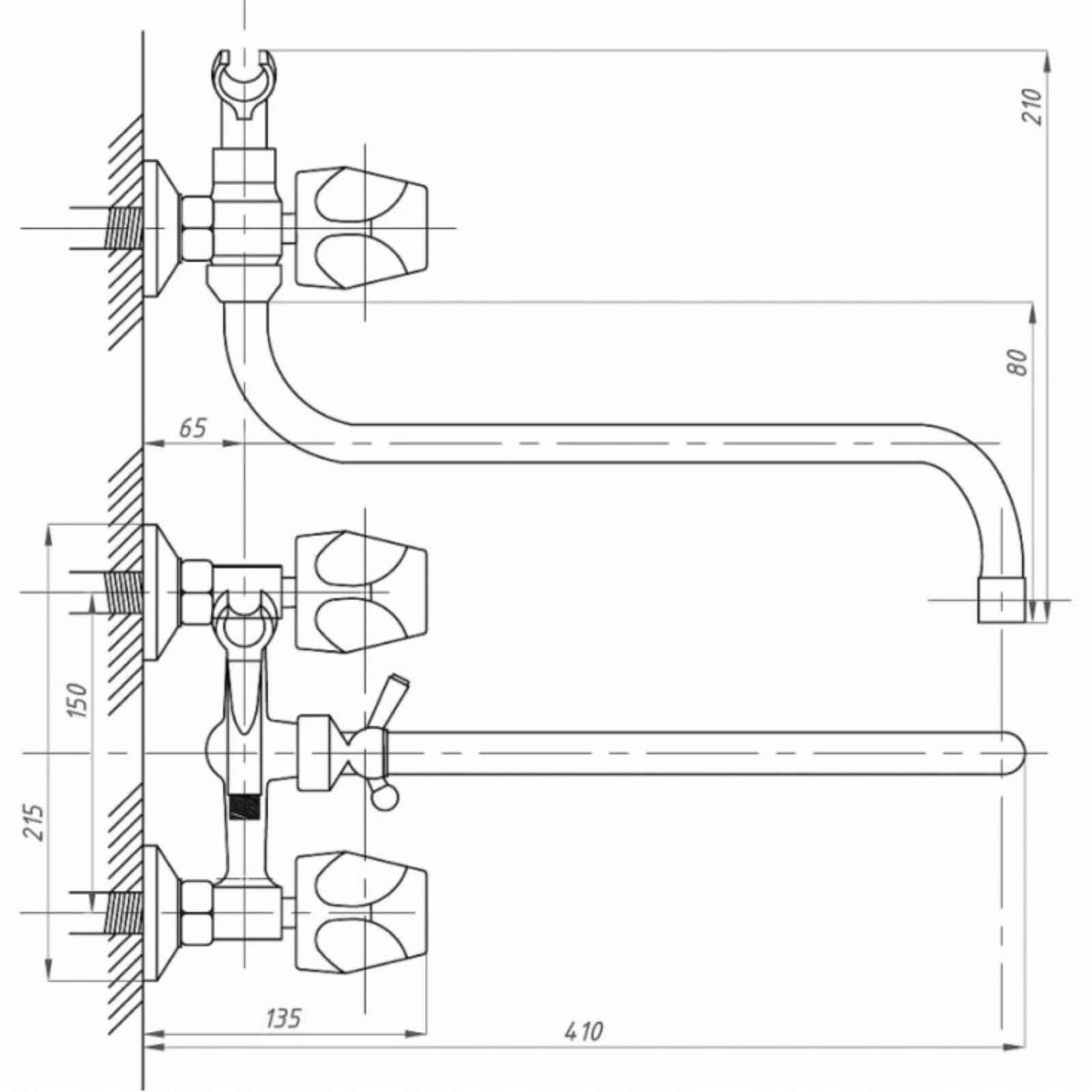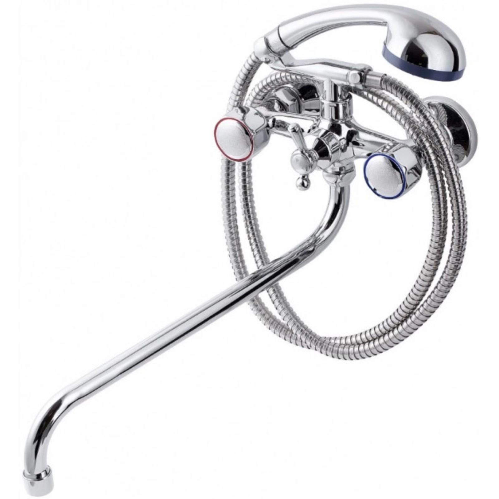 Смеситель для ванны FAUZT FZs-428-63, двухвентильный, длинна излива 360 мм, лейка, хром