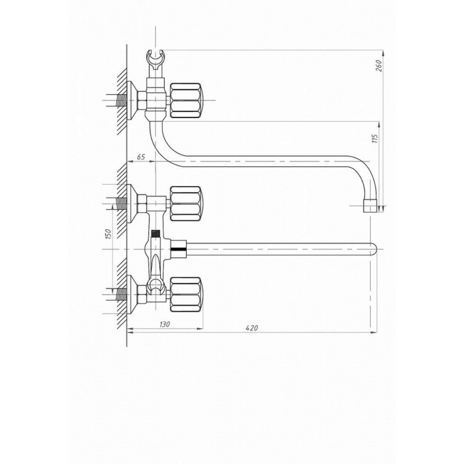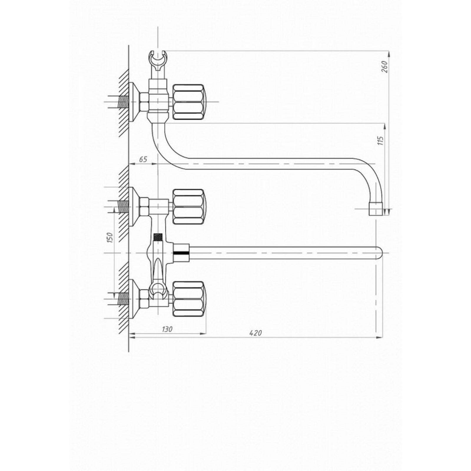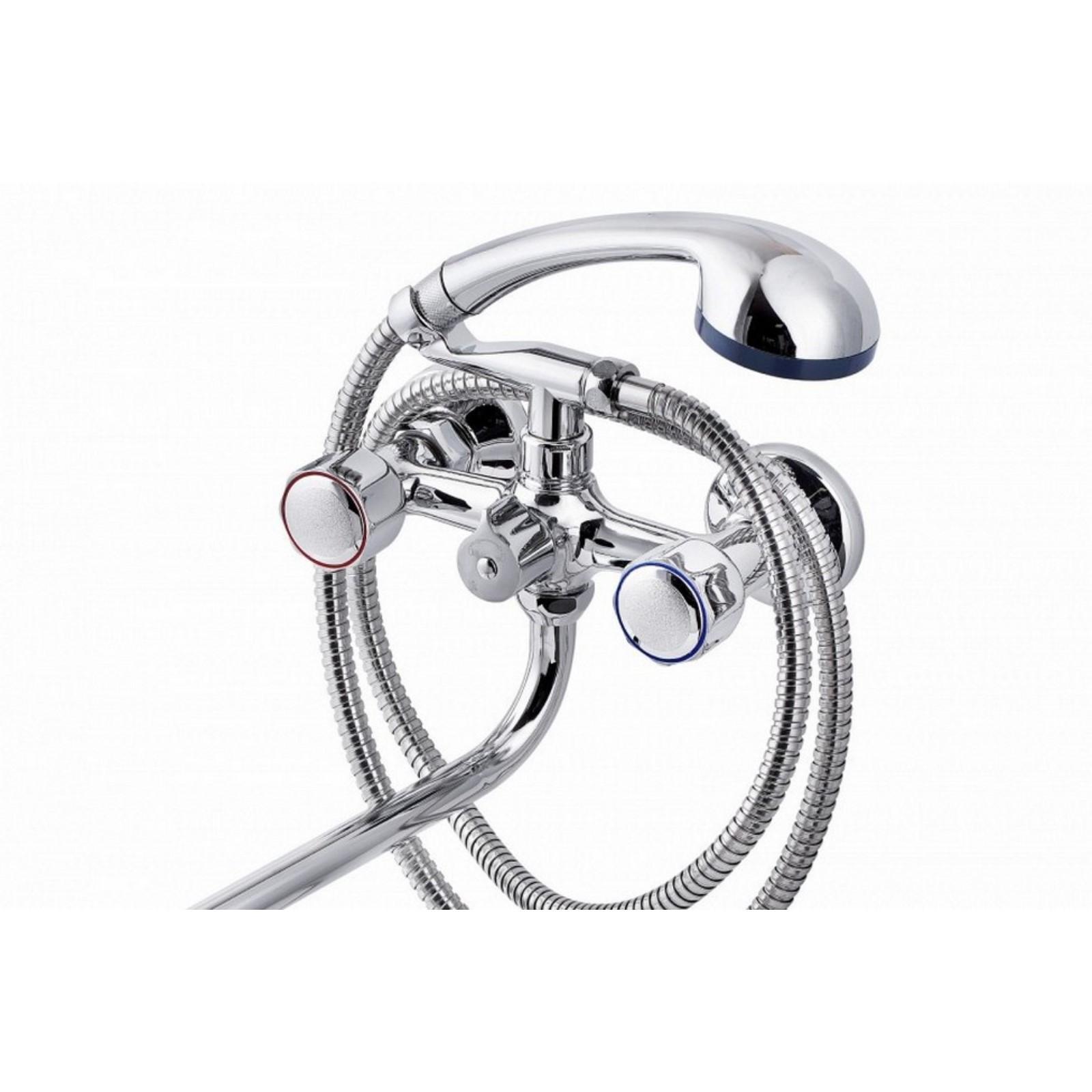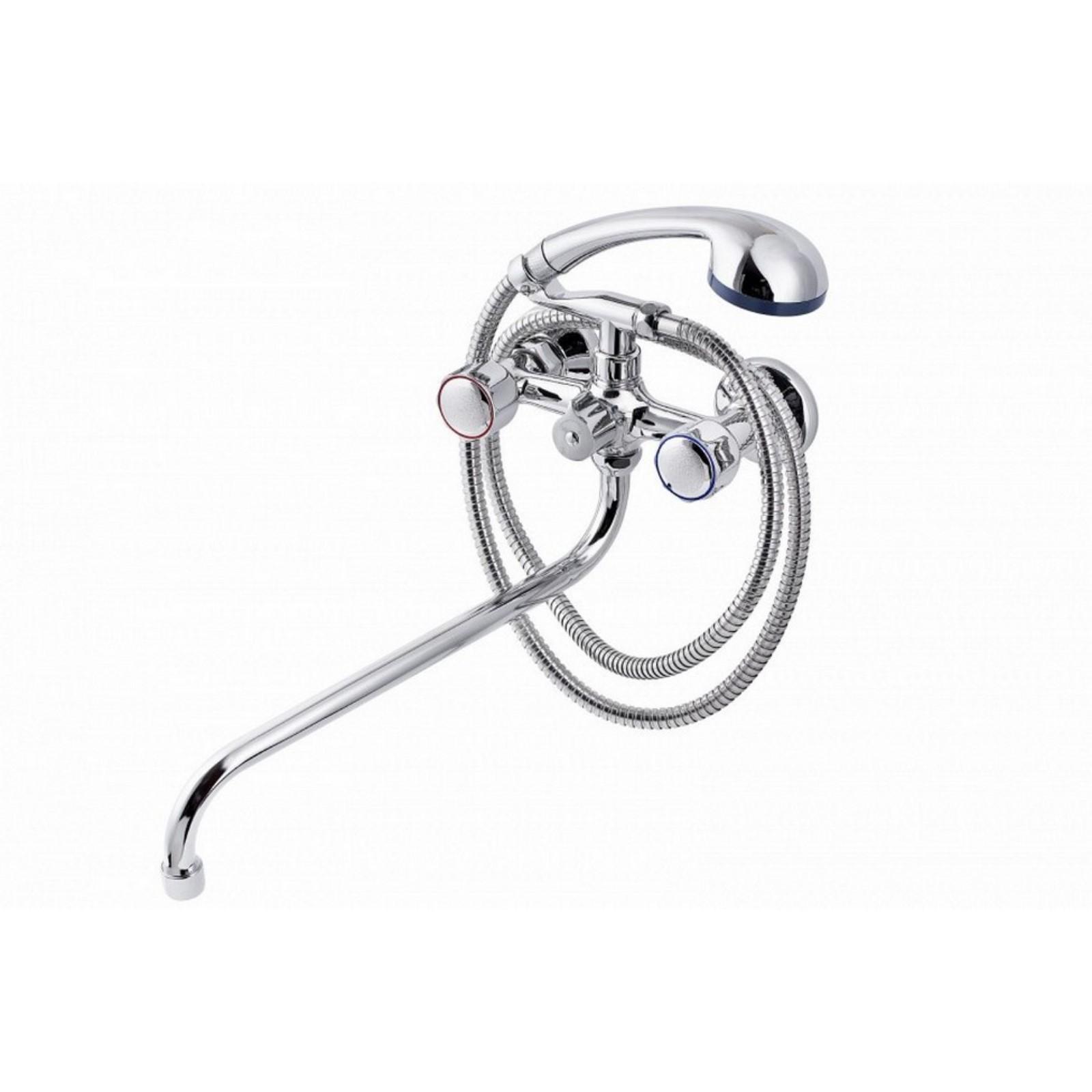 Смеситель для ванны FAUZT FZs-511-63, двухвентильный, длинный излив, душевой набор, хром